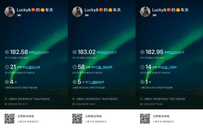 从最开始的充电新星V1,到充电先锋V2,再到如今的充电领航V3,每一级升级,都是G9陪我走过的一程路。作为新能源车主,以前总担心补能麻烦,直到用上G9的800V高压快充,商场喝杯咖啡、休息十几分钟,就能补能几百公里,小鹏超充站布局也越来越密,彻底打消了续航焦虑,这枚勋章,就是我安心用电的最好见证。