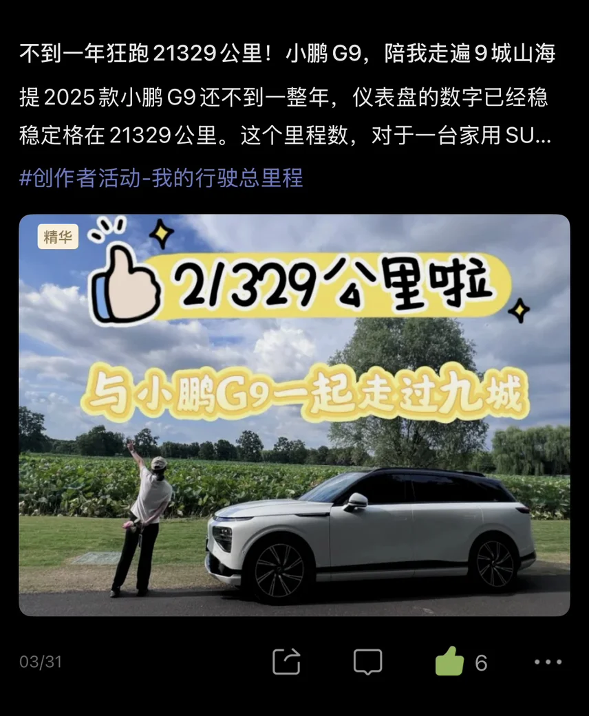 未来的日子里,我会继续开着G9,解锁更多勋章、奔赴更多风景,也会坚持在社区分享更多真实用车内容。祝愿小鹏汽车越来越好,也期待更多朋友加入鹏友大家庭,我们一起用车轮丈量美好,用勋章记录时光,开启更智能、更温暖的出行之旅~