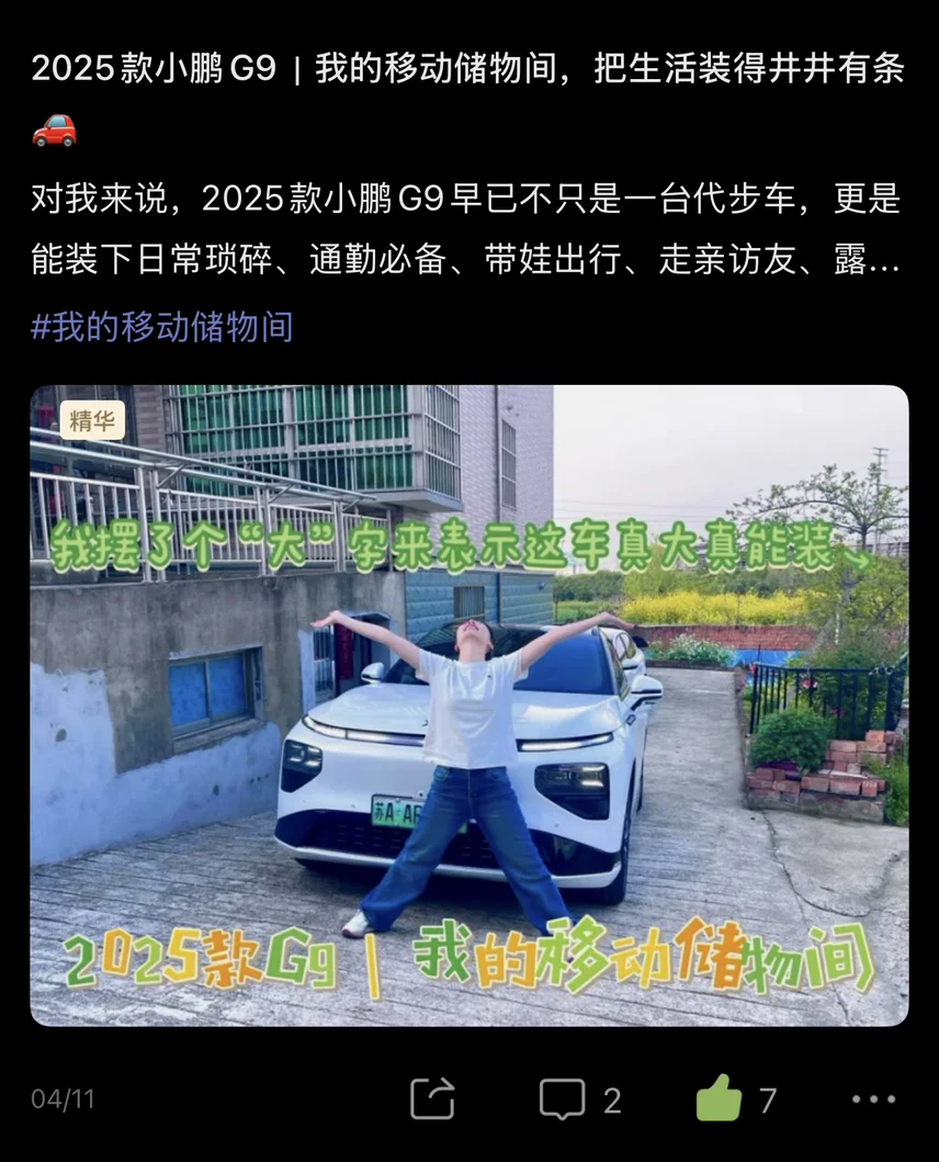 从提车初体验,到G9储物空间、内饰细节分享,再到智驾使用技巧、冬季用车攻略、快充避坑指南,我一直坚持把自己真实的用车感受、实用的用车技巧分享出来。看到自己的帖子能帮到其他新鹏友,得到社区和大家的认可,这份成就感远超勋章本身,接下来我的目标是发布25篇精华帖,全力冲刺LV.5!