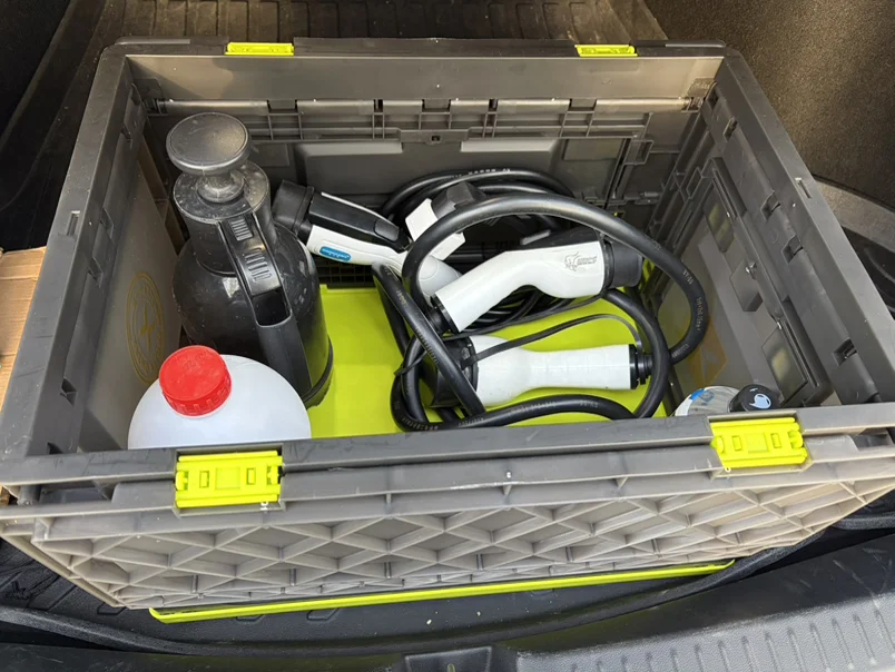 💁💁💁后备箱是我的出行补给站与工具仓,分层收纳超省心。上层放置多功能折叠箱,防水防潮,慢充延长线、家用插座充电枪、玻璃水、洗车喷壶等充电清洁用品统一收纳,规整不杂乱;下层隐藏空间专门存放不常用物品,充气泵、吸尘器、三角警示架、备用空调滤芯、雨刷等应急维保配件全部安放妥当,不占用日常空间,自驾、长途都安心。