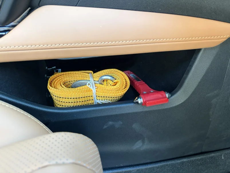 当然,还有四个车门上都有可储物的空间,重点考虑某次出行的需要。比如饮用水,纸巾、口罩等。