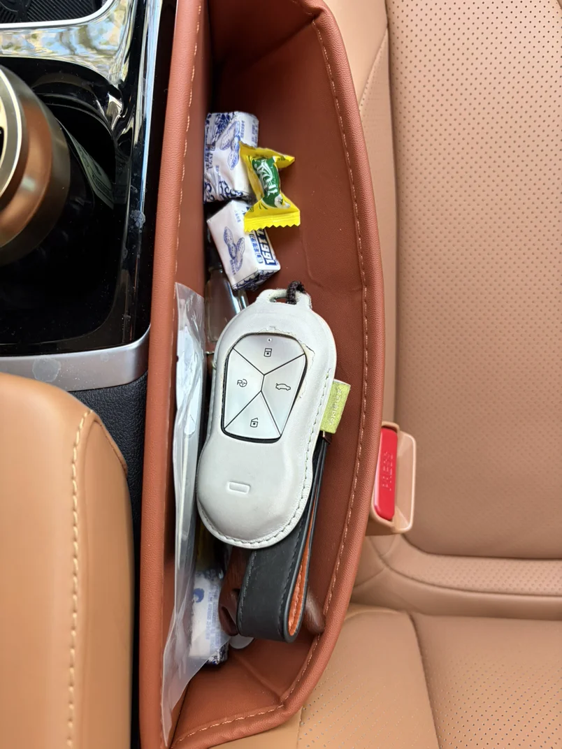 👉副驾储物柜收纳遮阳伞、雨伞、自拍杆,晴雨出行、拍照记录都从容;座椅夹缝盒放车钥匙、风油精、糖果,小物件不丢不落、随手可得。