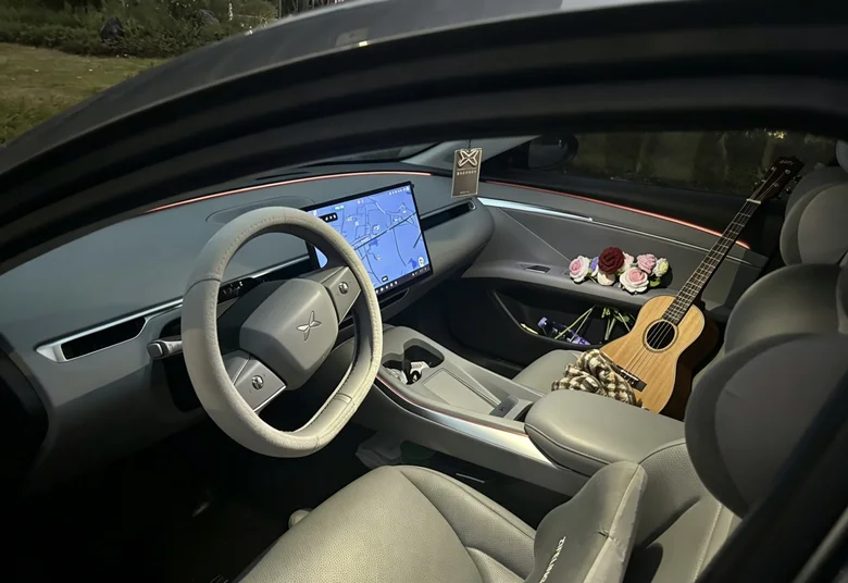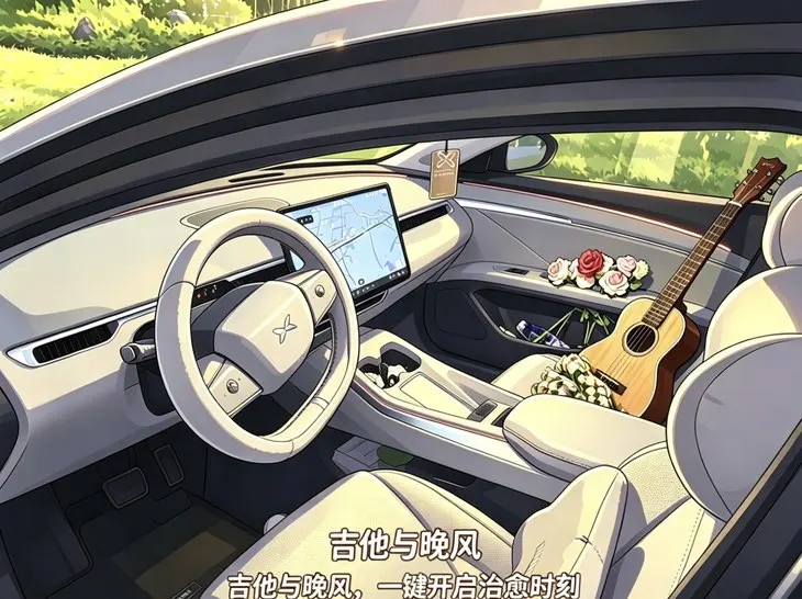 在车里K歌时✨,小鹏的隔音效果超绝,关上车门,外界的车流声瞬间被隔绝在外,搭配氛围感拉满的车内氛围灯,就是我的专属练琴房。弹唱《不分手的恋爱》时,暖黄色灯光跟着和弦轻轻闪烁,吉他扫弦的颗粒感和车载音响的混响完美融合,不用怕扰民,也不用在意跑调,只管跟着旋律唱。