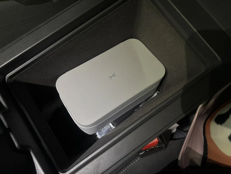 下层深藏:空间深得离谱,直接把小鹏商城的麦克风塞了进去。这种大容积设计,让我能把随身小物和娱乐设备同框收纳,每一程旅途都既有秩序,又有欢乐。
