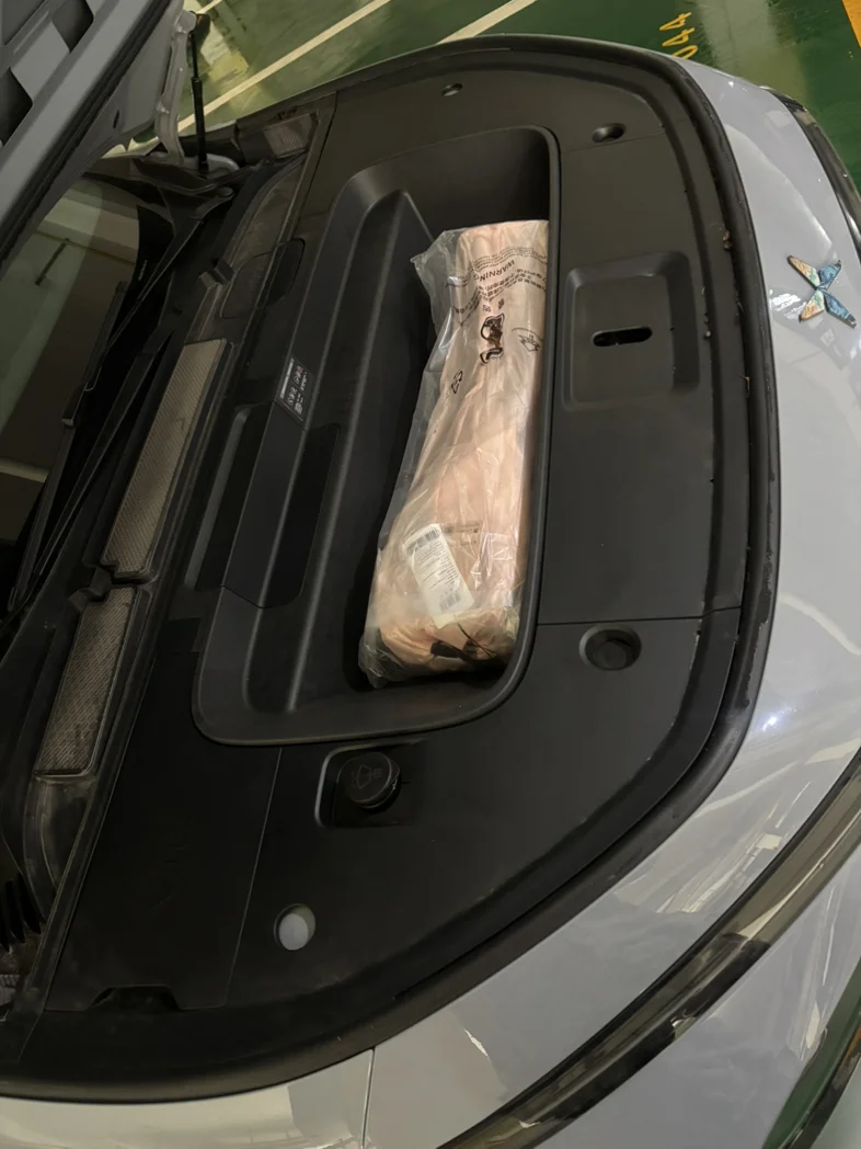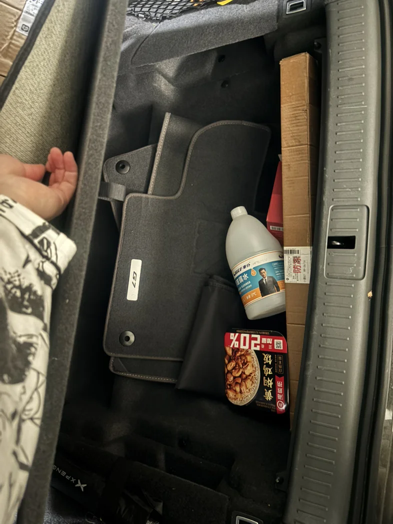 最后的前备箱才是点睛之笔!就像“移动的湿货仓”。箱底自带排水孔,完美解决了“装了湿物没法清洁”的痛点。无论是买了生鲜水果,还是去游泳带着湿泳衣,甚至是雨天把脏鞋放进去,都完全不担心。用完之后,直接冲水、打开排水孔,干干净净,这才是真正的“见水不怕”的储物间。