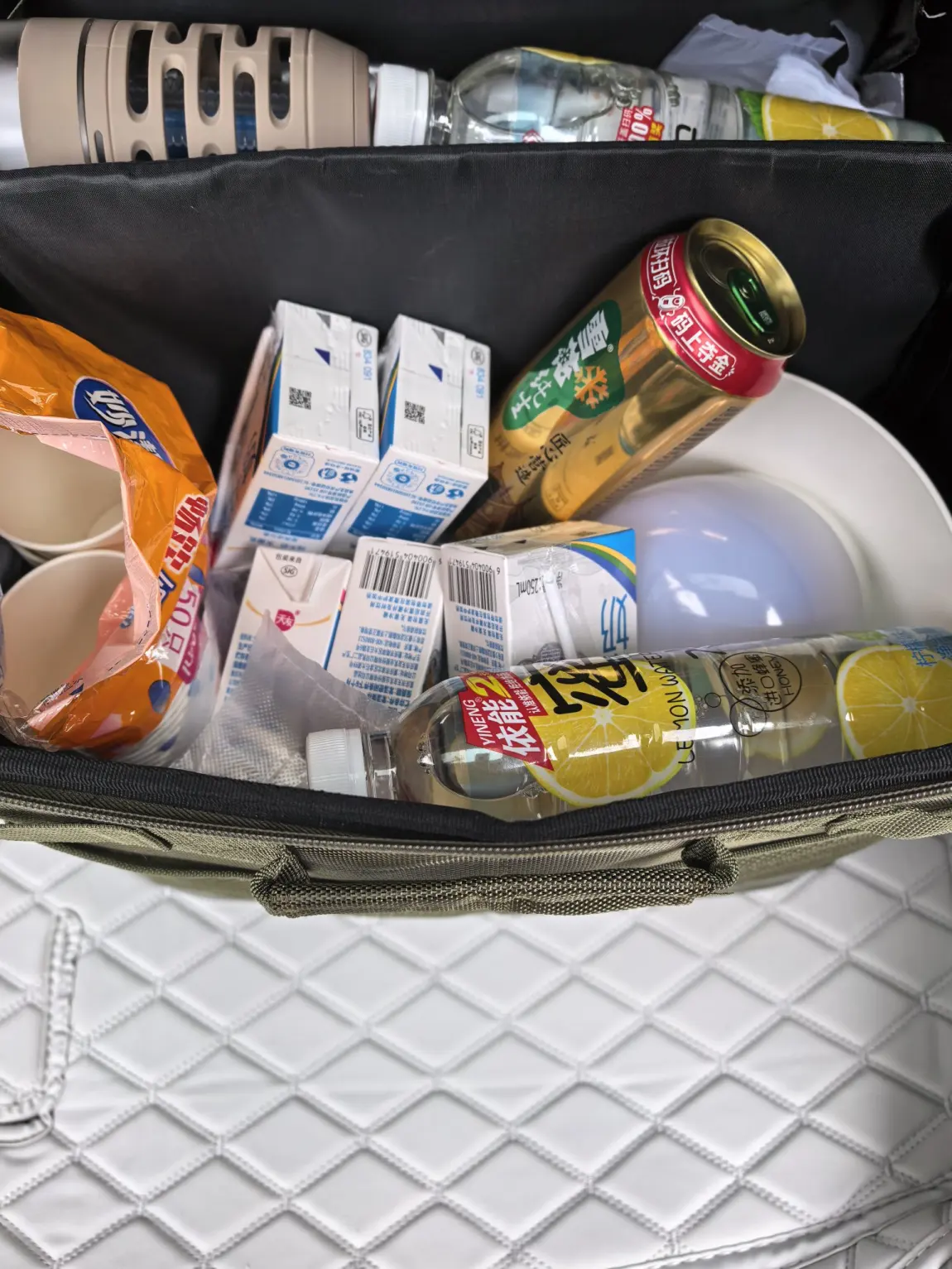 3. 常用物品前置:经常用的饮料、零食、餐具,放在容易拿到的位置,不用每次都翻遍后备箱。
