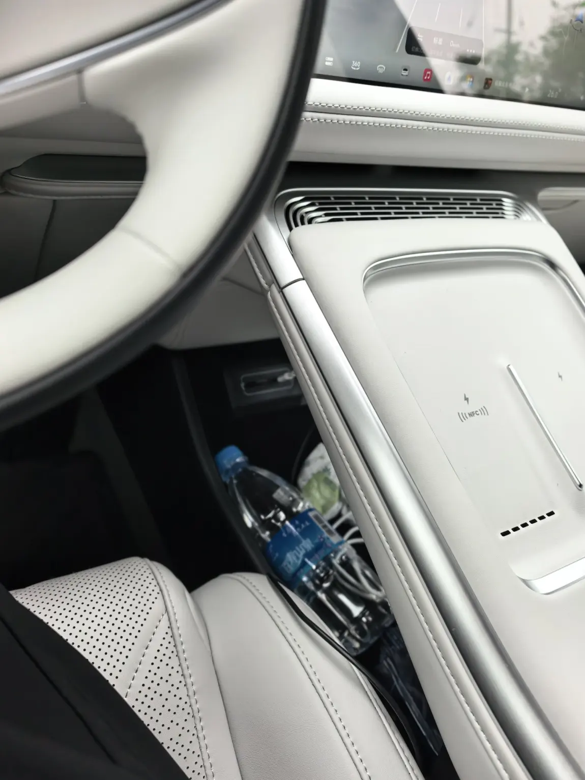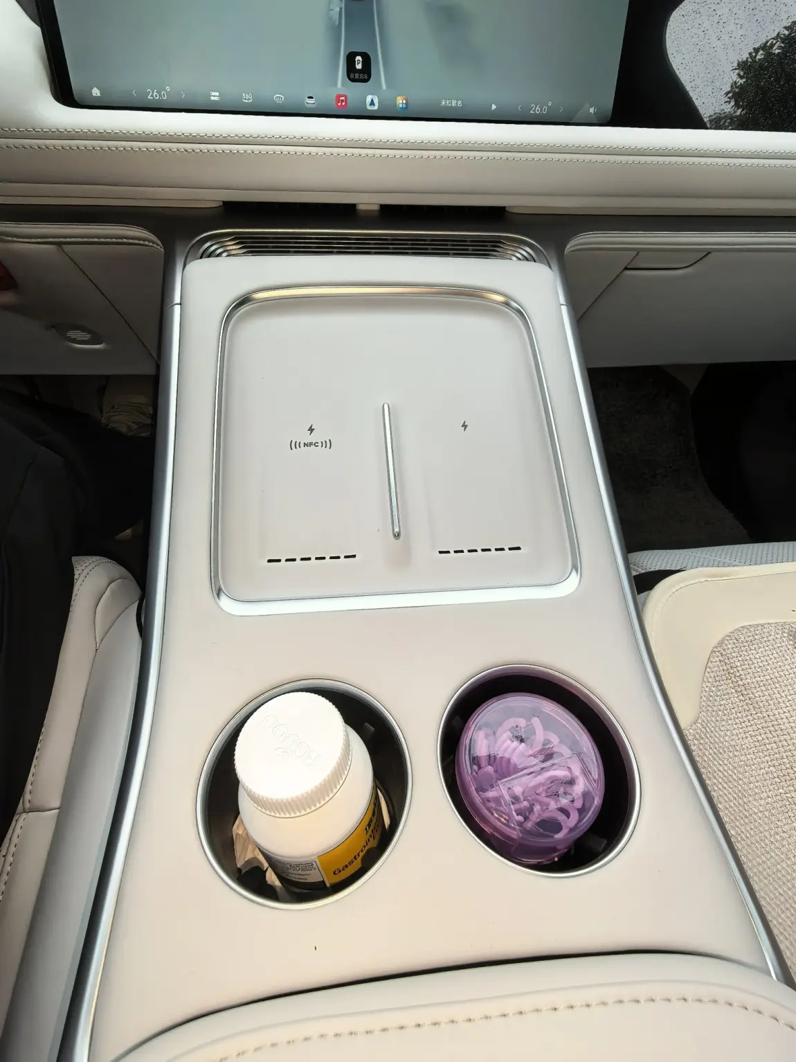 - 扶手箱&杯架:日常放纸巾、湿巾、孩子的零食,还有常用的充电线,随手就能拿到,长途出行超省心。