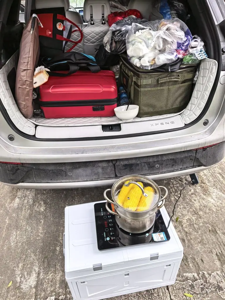 - 移动厨房系统:折叠收纳箱+电磁炉+户外电源,直接在后备箱就能开火做饭,服务区、景区停车场,随时随地享受美食,再也不用吃冷餐。