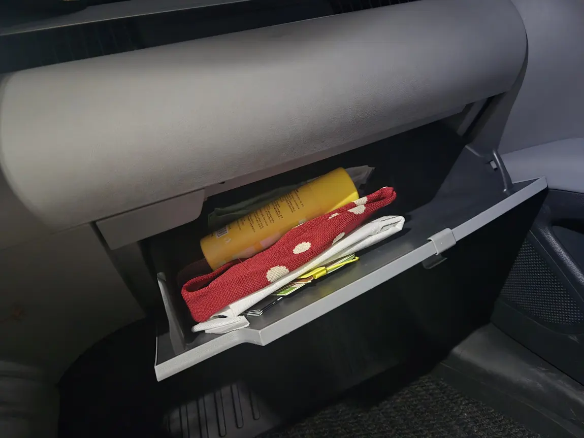 ▫️手套箱是我的颜值收纳角:放了好看的编织袋、防晒喷雾,还有车用小零件,整整齐齐不杂乱,颜值和实用性双在线~