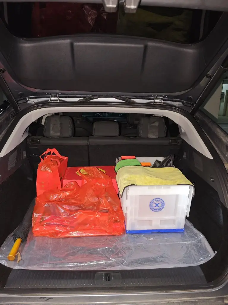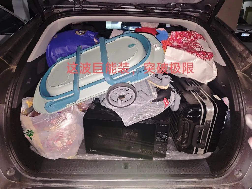 ②拖家带口巨能装。今年孩子稍大些了,岳母想把孩子带到岳父工作的地方去,可是要带的东西实在是太多了,微波炉、行李箱、洗澡盆、各种小菜等等,开始特别害怕一车装不下,毕竟有360多公里的路程,不可能来回跑几趟。但经过规则的摆放,小鹏G6展现出超能装的本领,一车全部塞下。