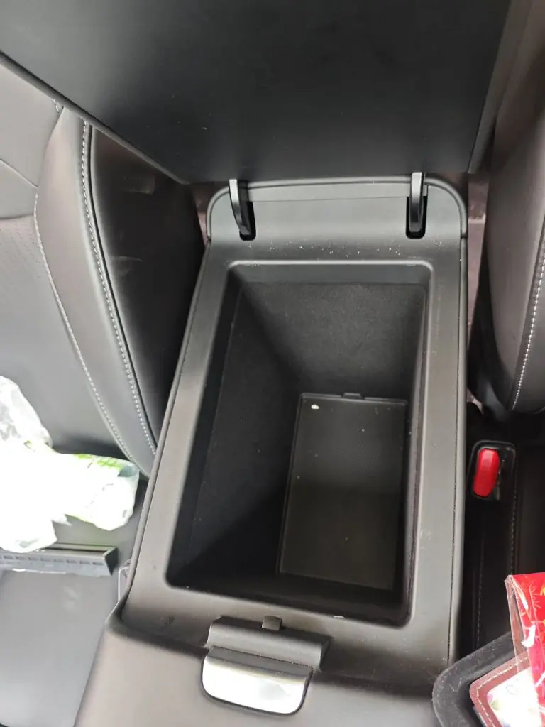 ②极深扶手箱。小鹏G6的扶手箱非常深,装东西特别方便,搭配一个储物盒就能将空间利用到极致。