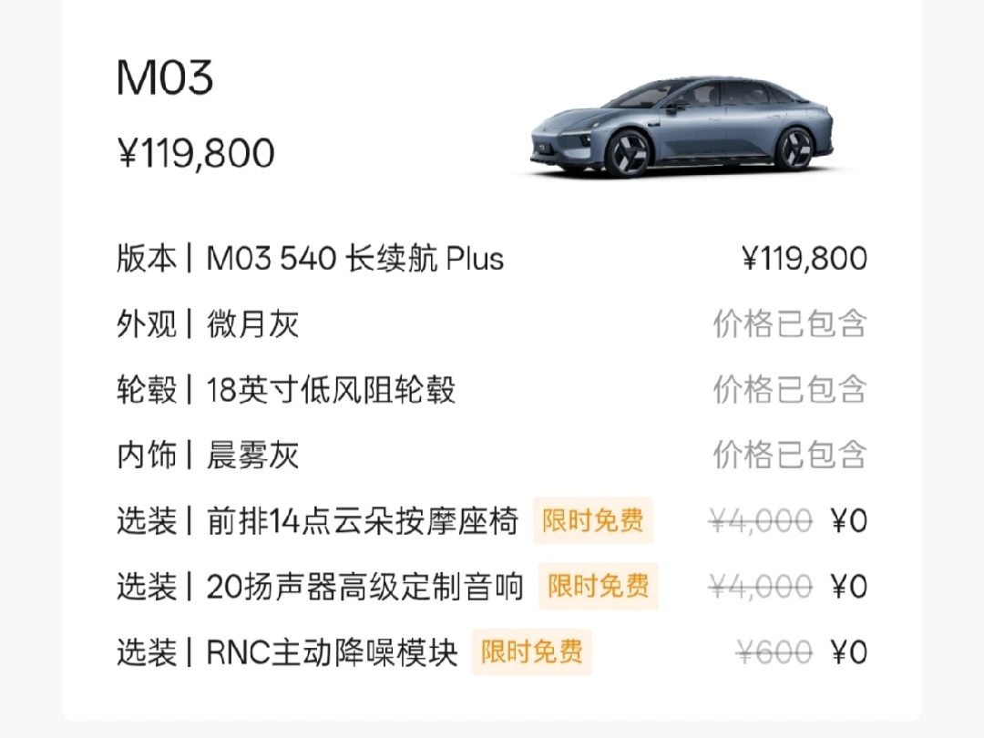 2026款M03 540Plus,用十万级价格给到二十万级舒适与配置,底盘、静谧性、座椅舒适度全面升级,是预算内性价比拉满的家用纯电首选。