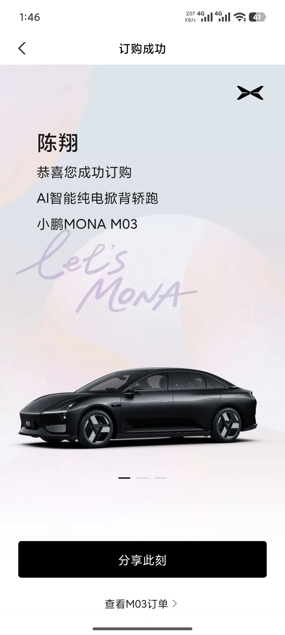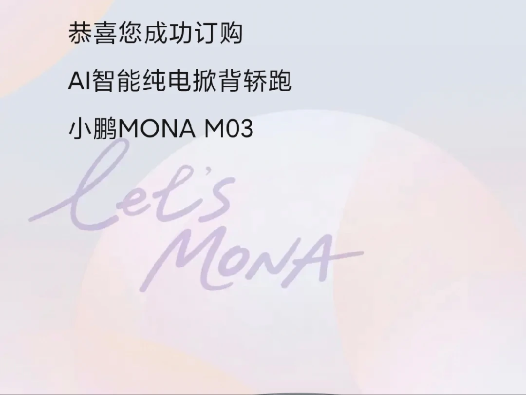当然,mona最终的发布会并没有让大家失望,加量不加价!!!于是就联系4S点小鹏的销售人员,嘎嘎就下单,于是就又开始期待了,就是与自己的新车赶紧见面。加油!