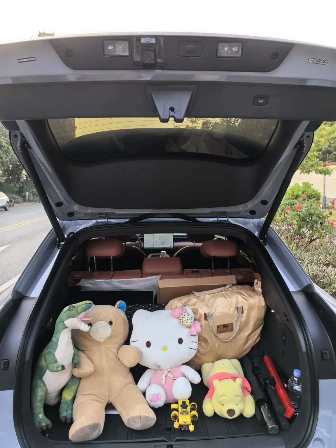 两个行李箱 + 小鹏玩具熊 + 储物箱 + 两个茶叶礼盒,位置还很宽裕。不用为了“装得下”而牺牲“带什么”,这种松弛感,才是假期该有的样子。