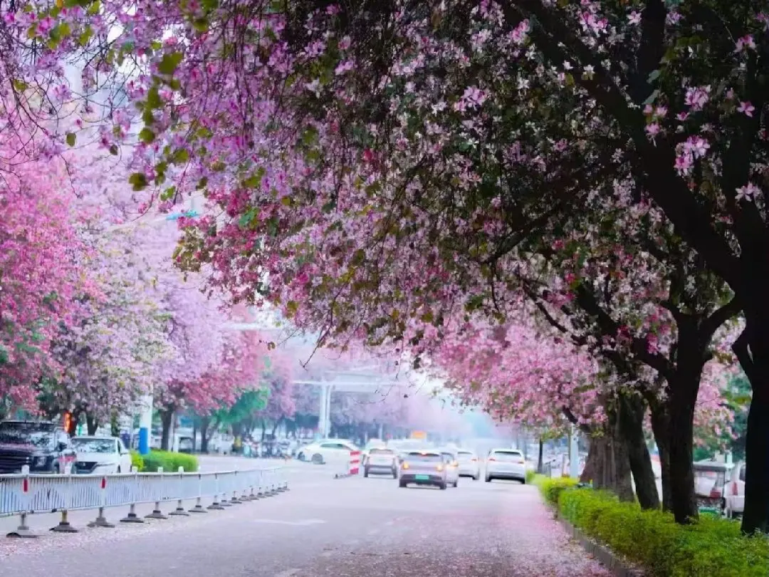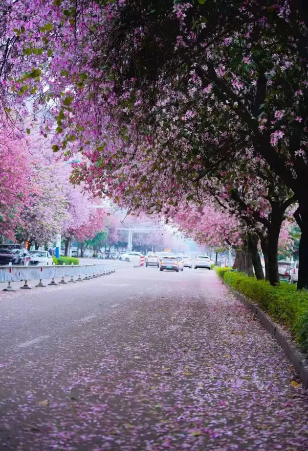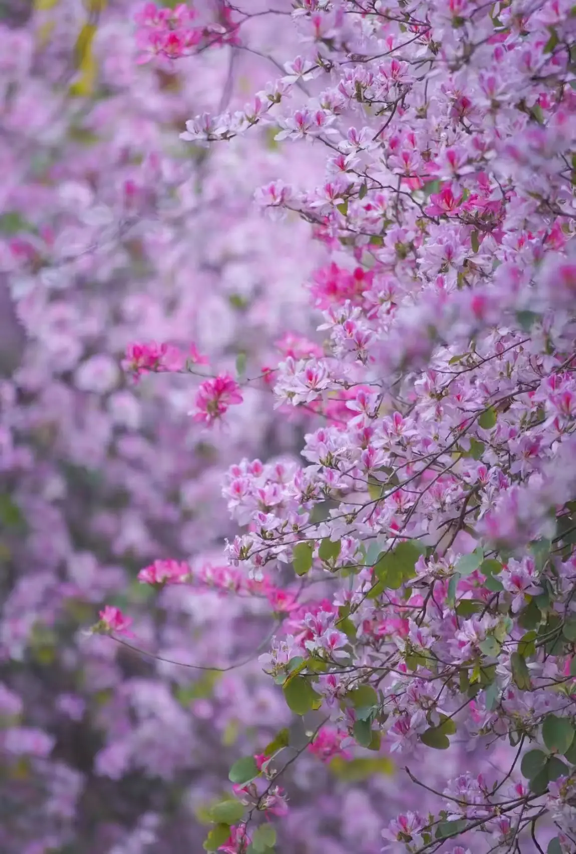 不用奔赴远方,在街头巷尾遇见紫荆花的瞬间,就等于抓住了整个春天的美好。找个闲暇的午后,去赴一场紫荆花的约会吧,让这满树的粉紫,治愈所有疲惫~
