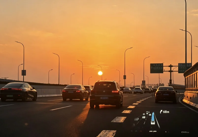 黄昏降临,城市高架灯火次第亮起,赶路的车灯与道路汇成璀璨星河,车窗外流光溢彩,人间烟火与漫天夜色相融,温柔又治愈。