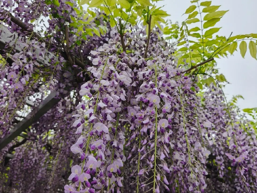 漫步常熟紫藤园,满目皆是温柔的紫。一串串紫藤花从虬曲的枝桠间垂落,如云似雾,层层叠叠,像被春风揉碎的紫霞,又似缀满枝头的流苏璎珞。微风拂过,花穗轻轻摇曳,细碎的花瓣簌簌飘落,空气中弥漫着淡淡的清甜香气。