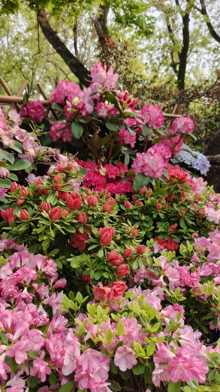 #户外主题色# 春日的天平山,最动人的莫过于漫山盛放的杜鹃。沿着山道拾级而上,一簇簇、一丛丛杜鹃热烈绽放,红的似火、粉的如霞、淡紫温柔,深浅交错,铺满山坡与崖边。花瓣层层舒展,在青山绿树间格外明艳,像给山林披上了一袭绚丽的锦缎。