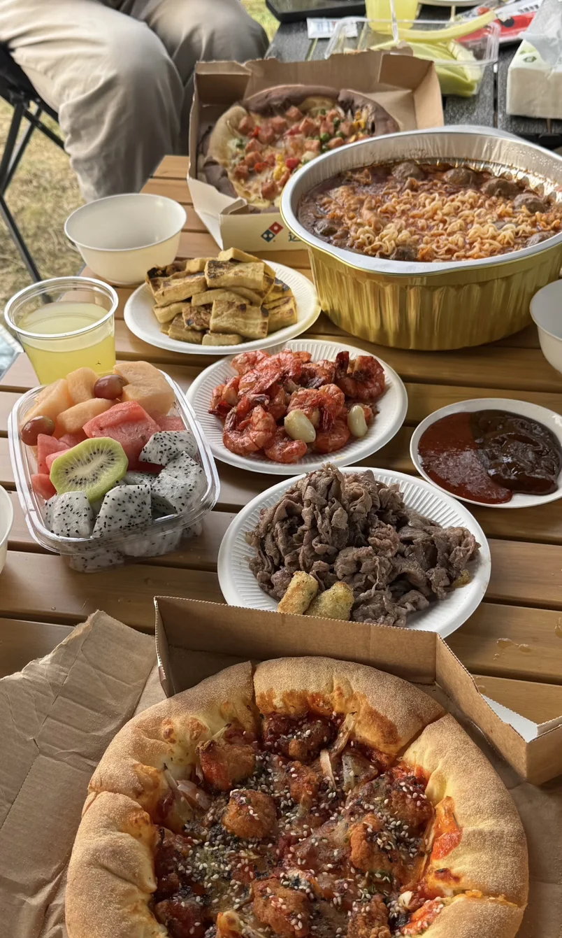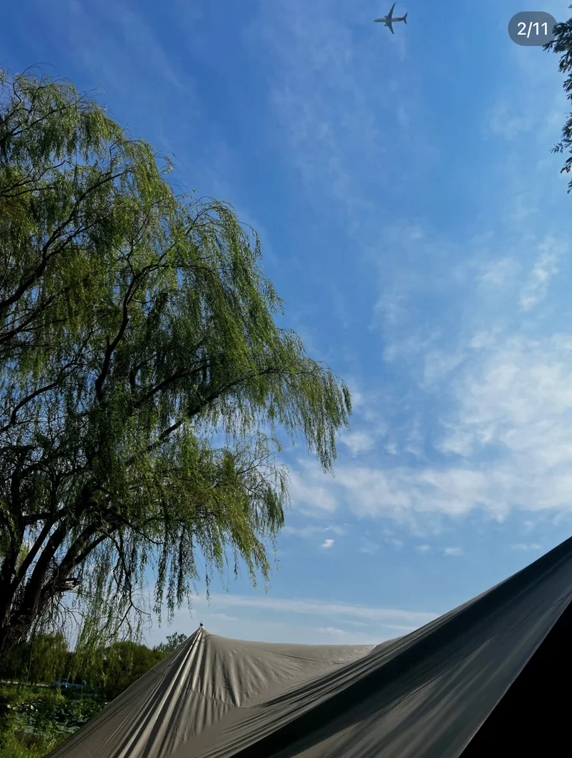 #露营目的地# 从奥体出发全程55km,中环+环湖公路路况绝佳,全程开小鹏NGP辅助驾驶,跟车、变道丝滑到离谱,开完全程完全不累!营地门口超大免费停车场,车位充足,开SUV也毫无压力,后备箱直接变身移动储物间,所有装备轻松装下,还能用车载外放电煮火锅,实现户外用电自由!