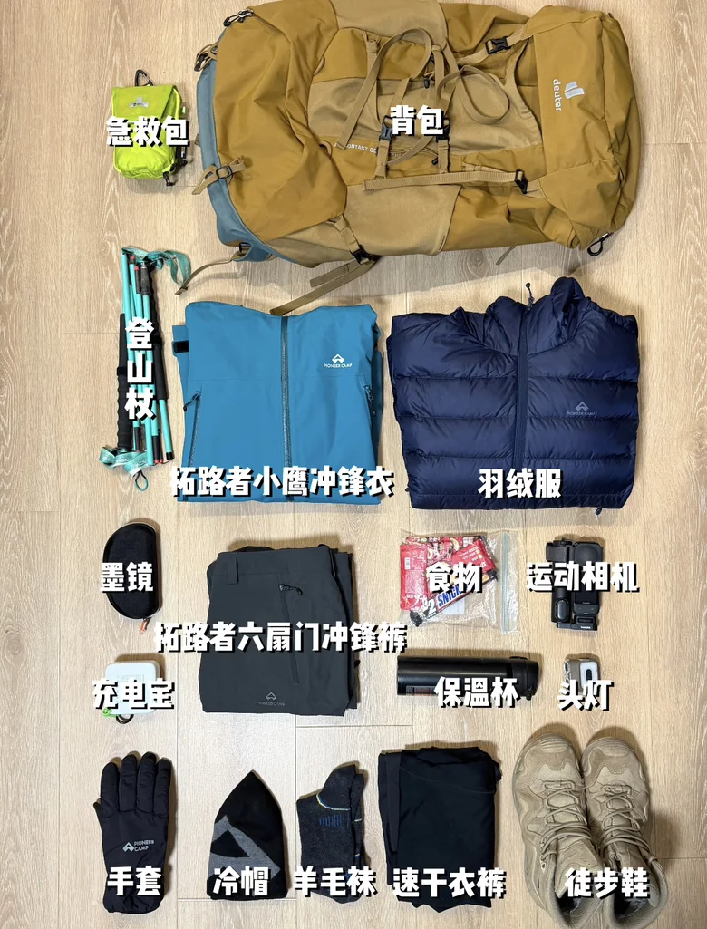 出发前一晚,特意给车子充满电量,续航拉满,彻底告别旅途焦虑,安心奔赴远方。仔细整理好徒步备货清单,做好十足准备:轻便的徒步鞋、防滑登山杖是必备神器,透气速干衣、防晒衣、遮阳帽应对山间多变的天气,大容量保温杯装满热水,再备上能量巧克力、牛肉干、面包等补给零食,还有充电宝、湿巾、创可贴等小物件,一一装进背包,整装待发。