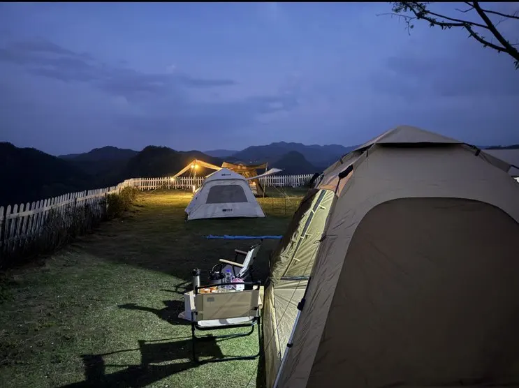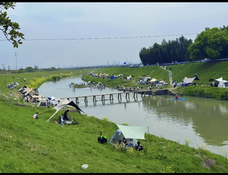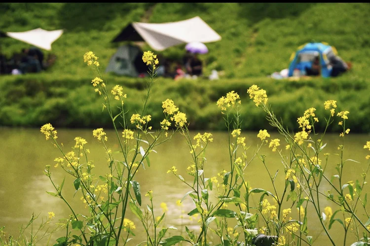 #露营目的地# 苕溪沿途一片油菜花就在油菜花边搭帐篷🏕️太美了打野非常方便,全部是野葱、青篙、马兰头来的比较早,抢到了绝佳位置,可以煮水烤肉附近有民居可以提供上厕所,仅100米