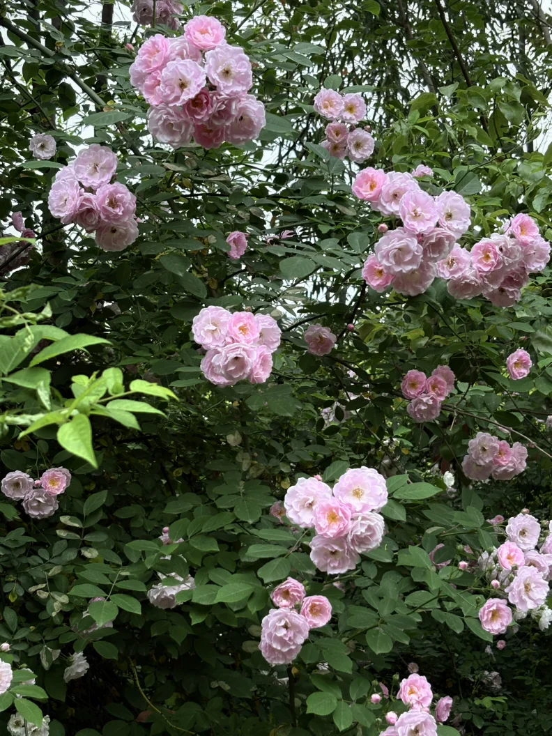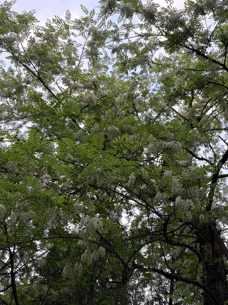 如鲜花墙般月季,繁华点缀如画般依然在线。刺槐远处就弥漫着香味,如同雪花般一串一串。