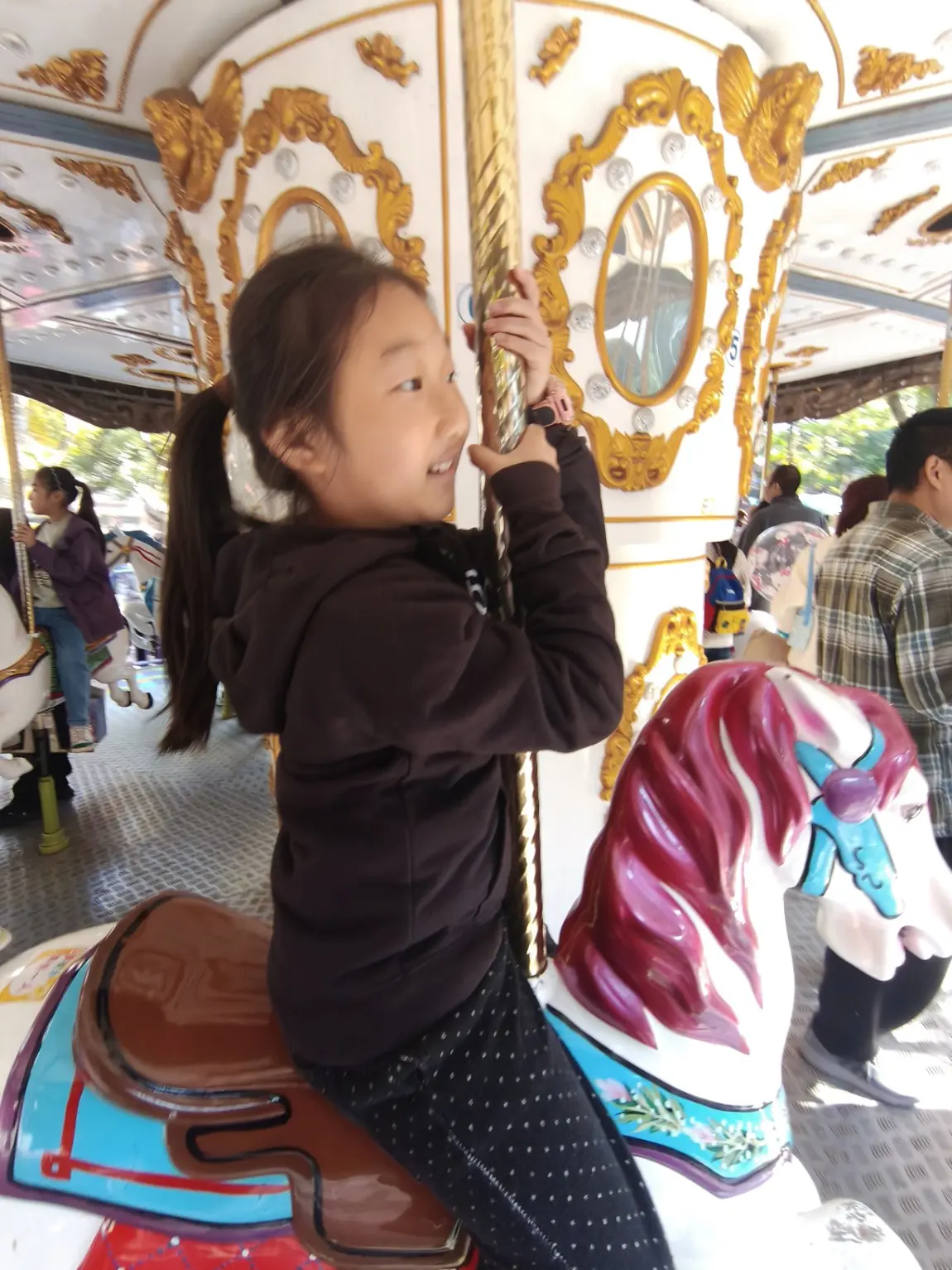 🎠 旋转木马:娃选了一匹粉色小马🐎,坐上去后笑得眼睛弯弯😊,举着小手跟我挥手👋,快门根本停不下来📸;