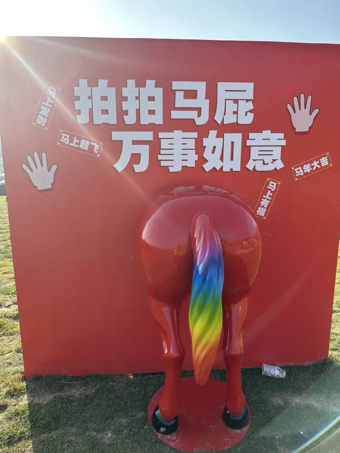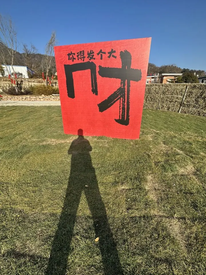 离开的时候和发财拍个照吧,设计特别有意思,人进去或者影子进去,就能够拼成这个财字,也告诉我们一个道理,人是最重要的,只有人健康才有一切可能性。