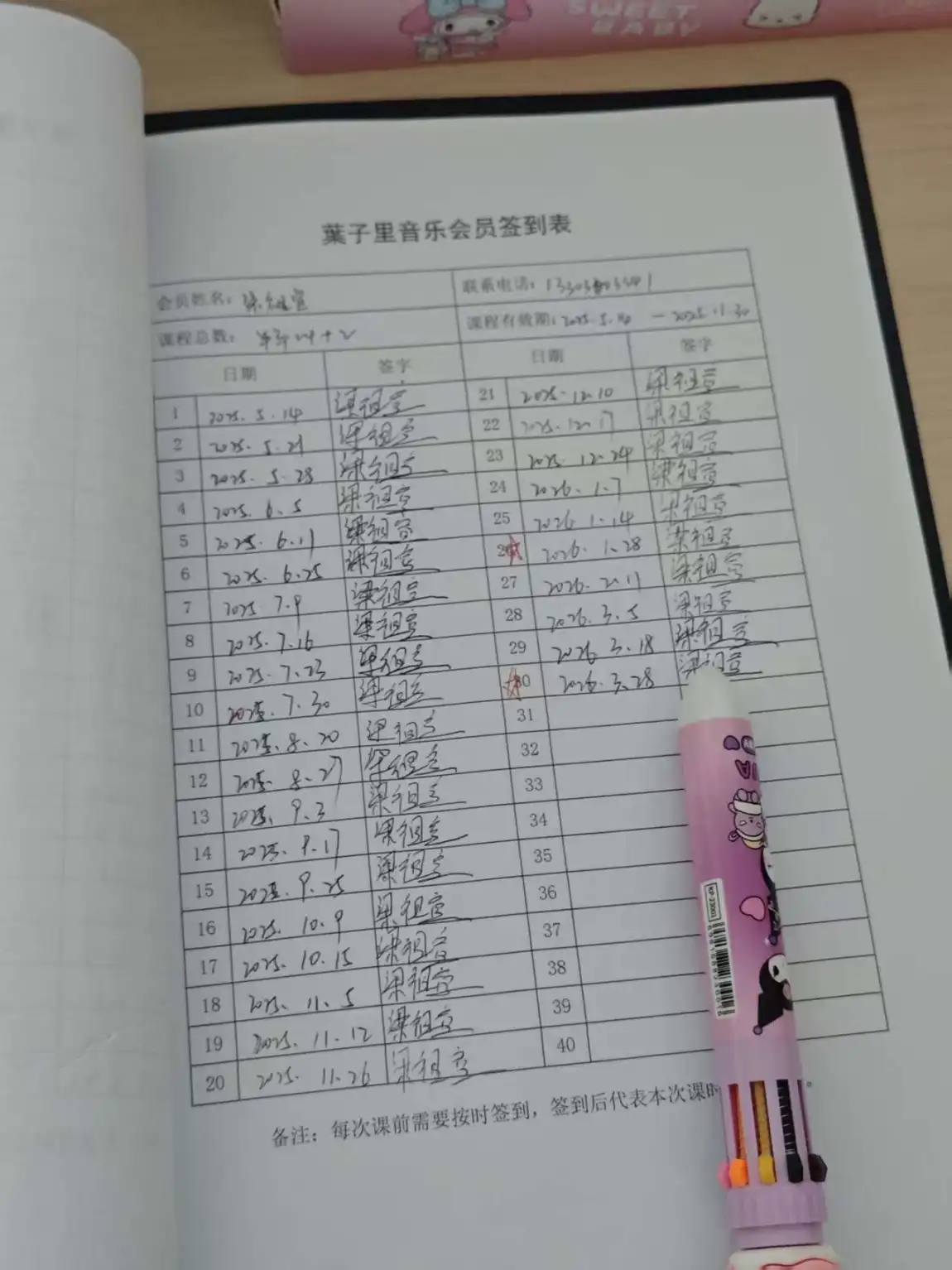 阳光漫过琴房的纱帘时,钢琴就成了我最亲密的伙伴。指尖落下,音符在空气里流淌,从《情歌》的婉转旋律,到周杰伦、薛之谦的经典曲目,每一次练习,都是与音乐的温柔对话。声乐课的签到本上,密密麻麻的签名,是从2025年到2026年,一整年的坚持与成长。从气息不稳到渐入佳境,那些在琴房里反复打磨的时光,都成了我唱歌时最扎实的底气。