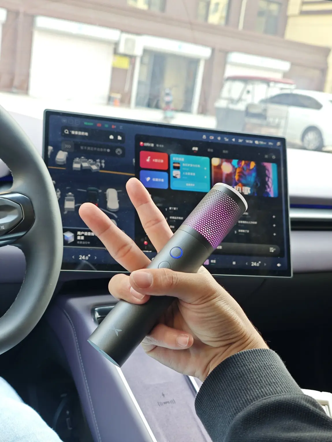 而当我坐进小鹏新P7,这份热爱便有了更自由的舞台。握着专属车载麦克风,音响瞬间将车厢变成了移动音乐厅。关上车门,外界的喧嚣被隔绝,只剩旋律与歌声在空间里环绕。语音呼唤小P点歌,KTV的曲库随时待命,氛围灯随节奏轻轻闪烁,混响效果恰到好处,仿佛置身专属演唱会现场。无论是通勤路上的轻声哼唱,还是周末自驾时的放声高歌,所有的疲惫与压力,都在歌声里烟消云散。