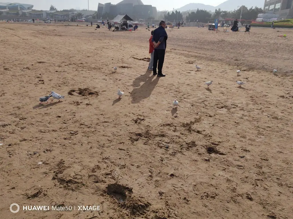 脚下的沙滩是大海精心铺就的绒毯,沙粒细如粉末,踩上去软乎乎的,每一步都留下浅浅的脚印,又被退去的潮水悄悄抚平。滩涂上的水洼倒映着蓝天流云,偶尔掠过几只鸽子,红爪轻踏沙面,啄食着被海浪推上岸的细碎食饵,它们不怯生,与游人共享着这片海岸的闲适。