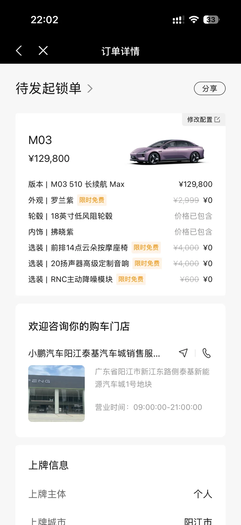锁单罗兰紫!我的第一台纯电轿跑