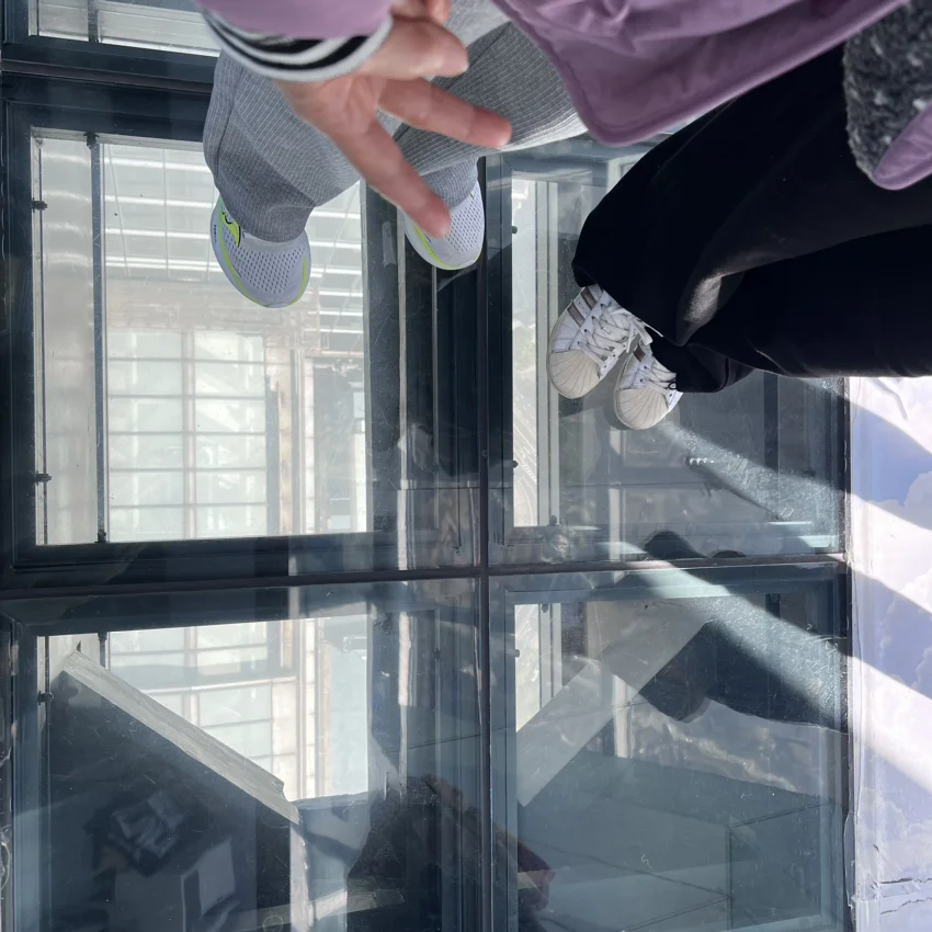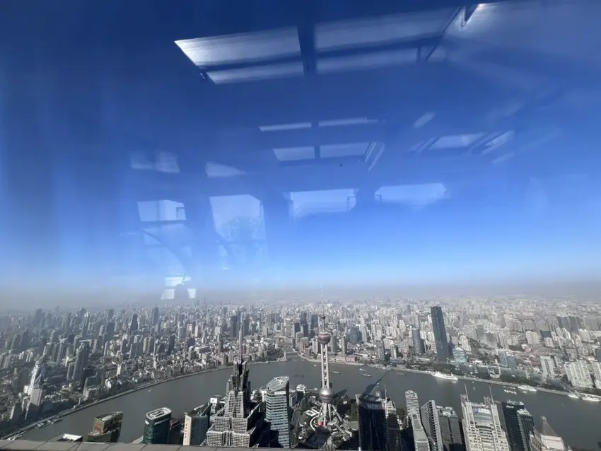 #交换窗外的风景# 站在环球金融中心100层的观光天阁,大晴天的阳光把整座城市照得通透,连云朵都好像触手可及。脚下的玻璃长廊仿佛悬空在城市上空,黄浦江像一条闪着光的蓝绸带,远处的东方明珠塔尖清晰可见,这种被阳光包裹的开阔感,瞬间把心里的烦闷都晒化了。还看见了2020最美厕所😓。观光结束下到B1层,画风瞬间从“云端”切换到了“烟火人间”。这里没有车水马龙,只有热气腾腾的市井气。走进COMMUNE幻师,美式复古的风格装修与楼上的极简高空感截然不同。我们一家人围坐一桌,点了一大桌丰盛的午餐,每一道菜都色香味俱全,大家吃得津津有味,欢声笑语不断。这种从474米高空俯瞰世界的震撼,到转身投入地下美食广场的温暖,大概就是陆家嘴最迷人的折叠时刻。耳边是周围家庭聚餐时的欢声笑语。