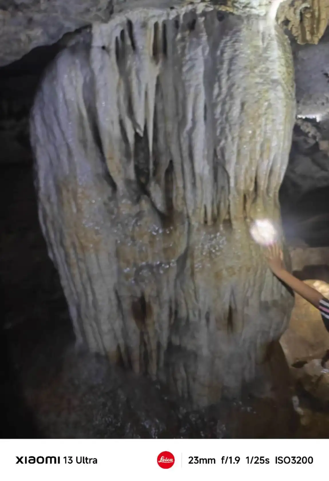 换好装备进洞才发现,这哪里是普通溶洞,分明是藏在地下的水晶秘境!没有多余的人工灯光,全靠头灯照亮,6公里的探险路走下来,每一步都像拆盲盒 。抬头是层层叠叠的钟乳石,手电光打上去,水晶般的结晶闪着细碎的光,有的像银山,有的像晶花,还有的石毛在悄悄生长,大自然的鬼斧神工真的绝了 。