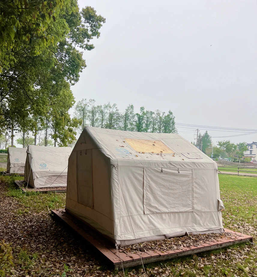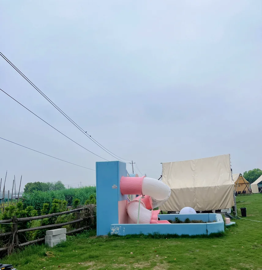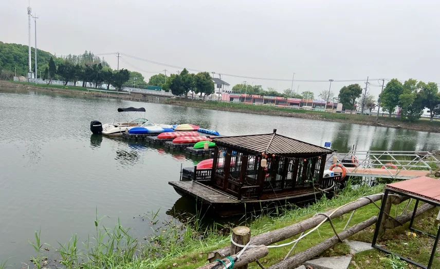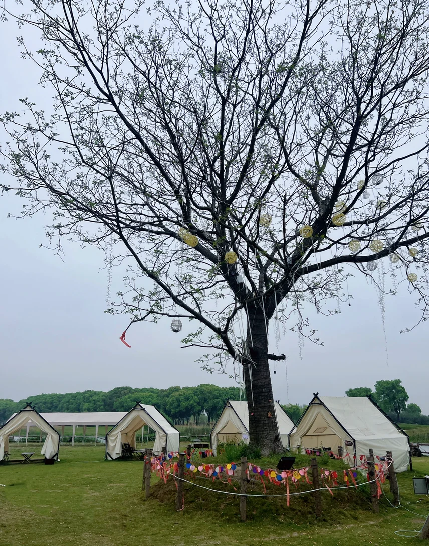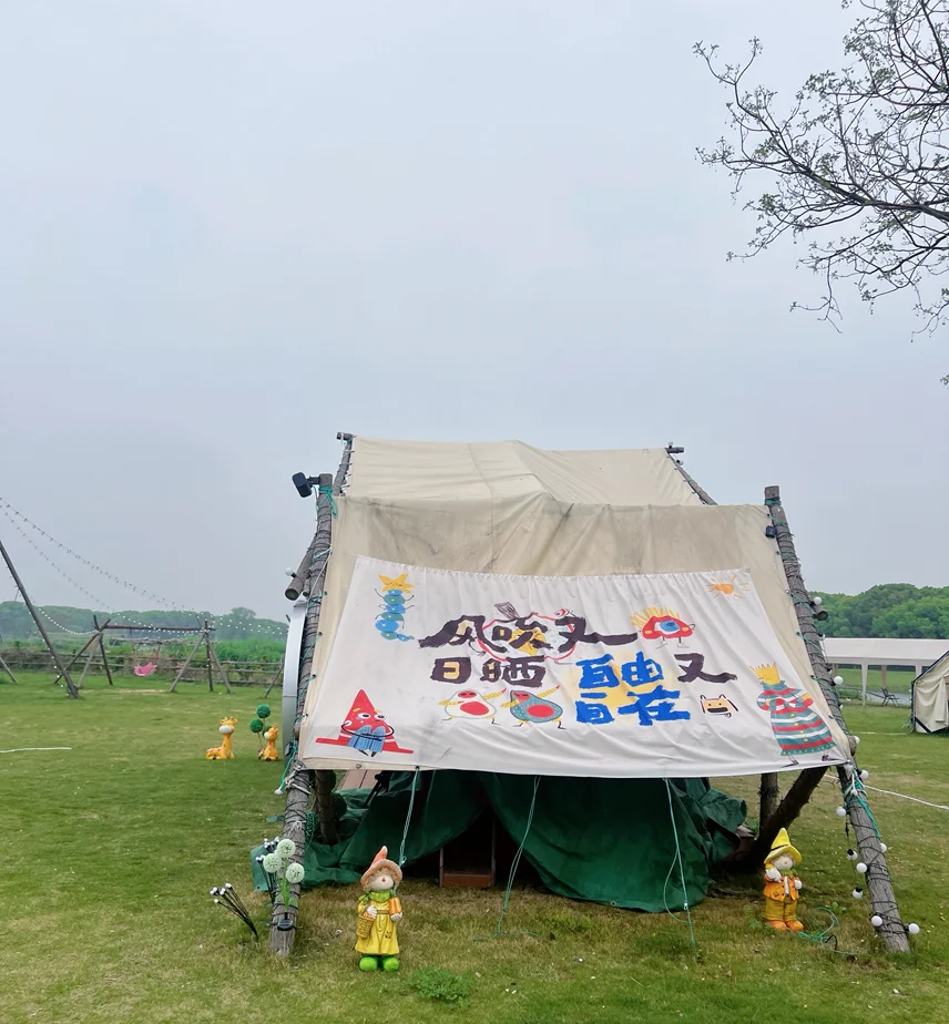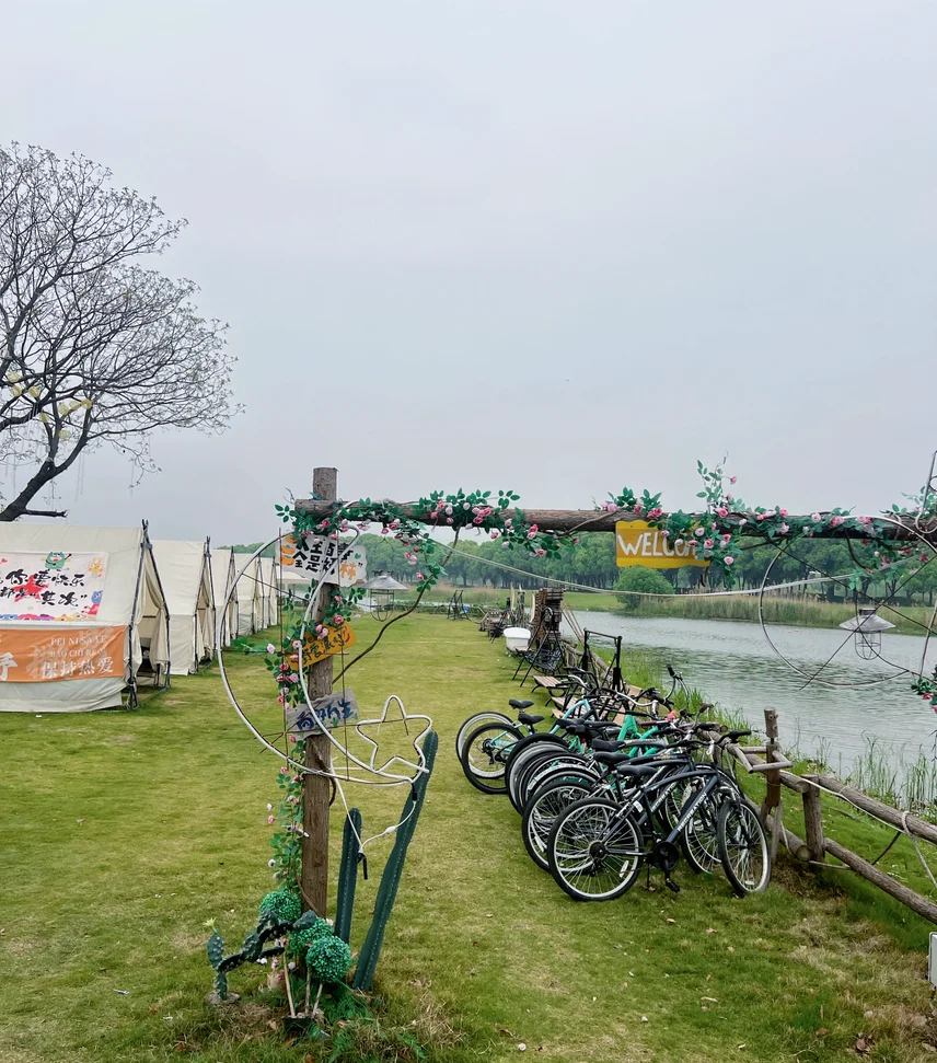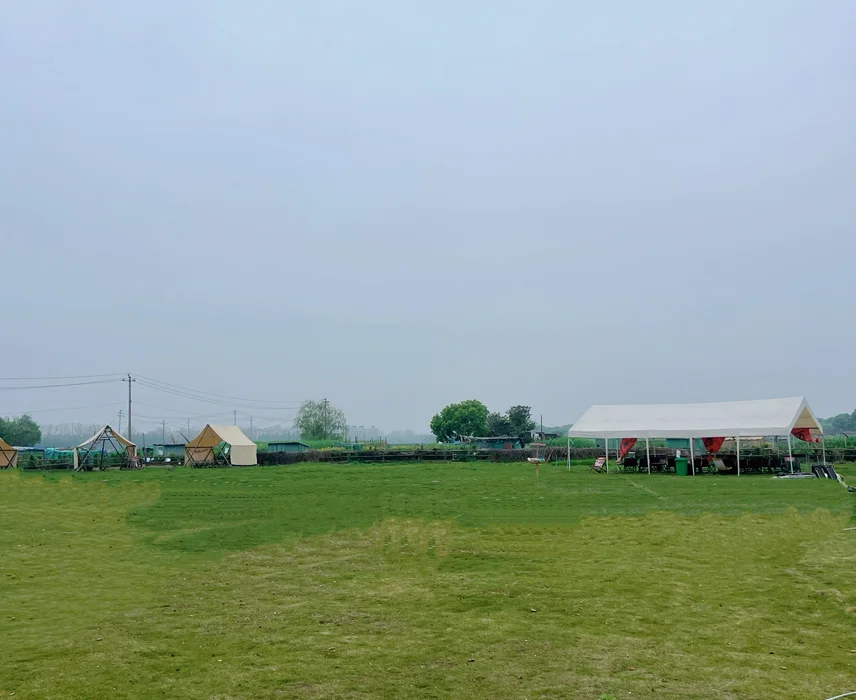 营地就在淀山湖镇度城村,临湖而建,有大片柔软草坪,配套齐全:可租帐篷、吃自助餐,还能唱歌、钓鱼、玩真人CS,五一节前人少景美,性价比超高,停车也方便,直接开到营地附近,不用折腾搬装备。