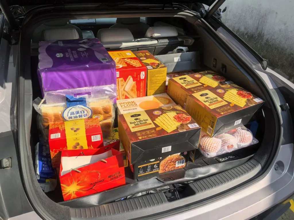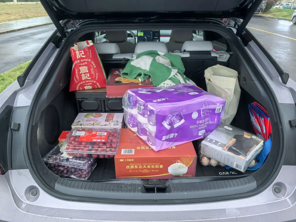 平时没有时间去逛超市,一到周末必到山姆会员超市逛一圈,统一采购一两周的食物和生活用品,顺便也会帮邻居朋友代购一些网红产品,由于山姆会员商店都是大包装,如同小轿车装个几件可能就满了,空间也不能充分利用,得益于小鹏P7+后备箱装完自己买的还能再装下给亲朋好友代购的,掀背式尾门再大的商品都放得下。
