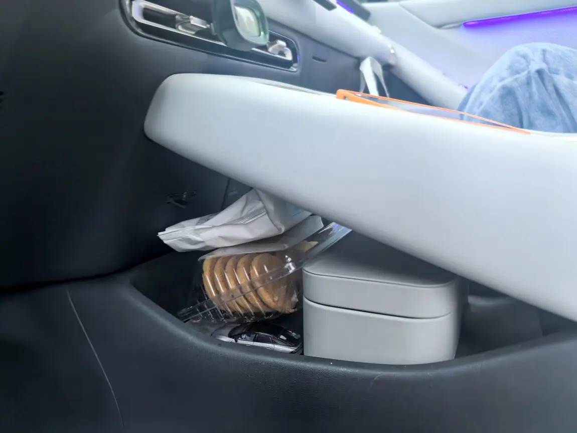 虽然这个储物空间也很实用了,但是我觉得新款MONA这块的储物格设计的更人性化,不仅空间变规整了,而且前方还空了一点与中控断开了,这样拿取真的很方便,U盘数据线也更好插,再也不用趴在底下找半天了,这种好的设计希望以后的小鹏P7+改款也可以多借鉴。