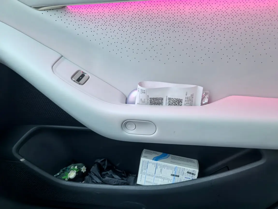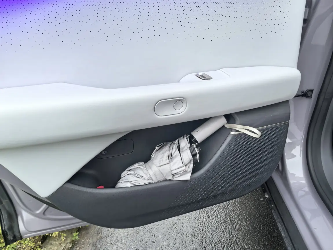 前后排左右门板下方的储物格我一般都放着伞,这样下雨天就可以随手拿到,门把手处的小格子我有时候会放耳机,或者手机充满电不想再充电了,也能放进这个格子。