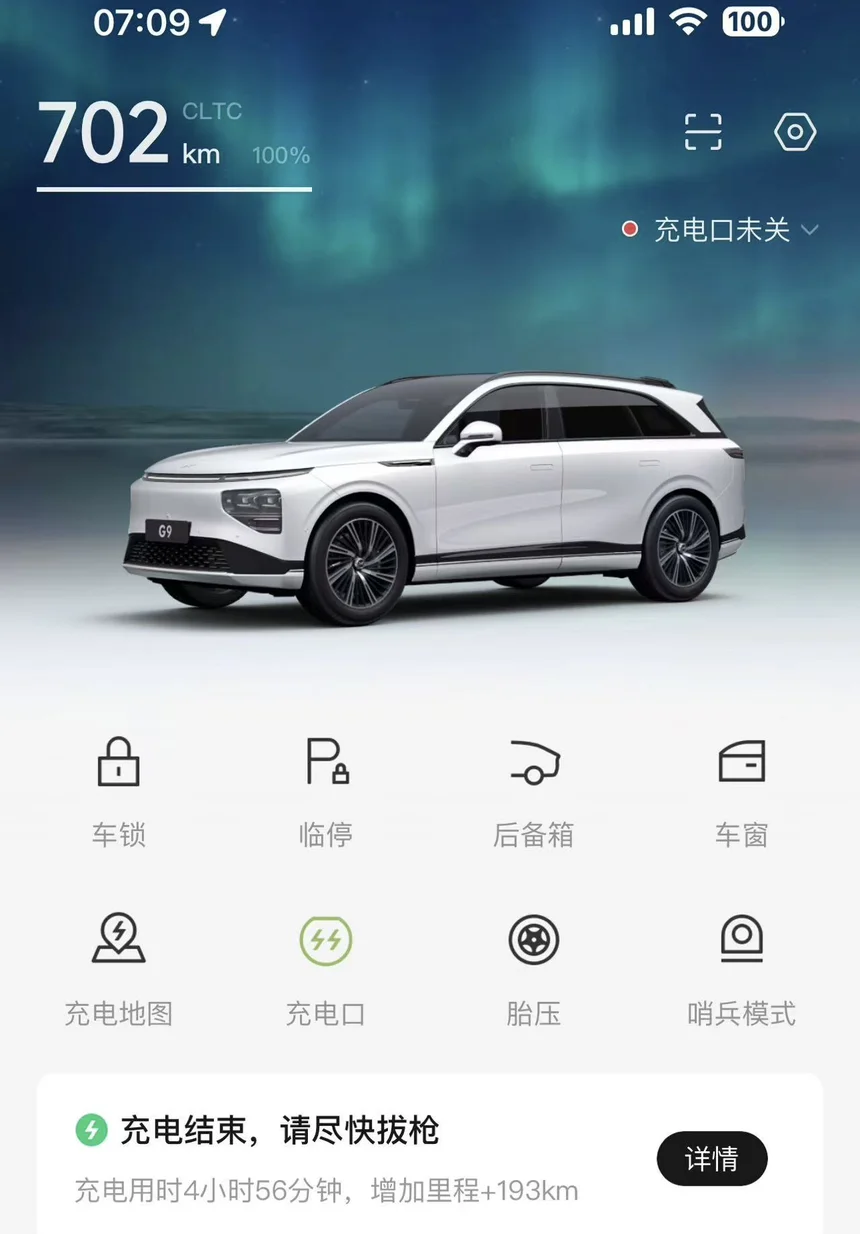 游玩尽兴后,我开始返程。查看小鹏G9的续航,仍有近400公里,足够轻松返回盐城。