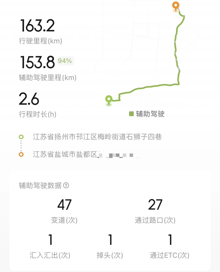 清晨从盐城出发,坐进驾驶舱,续航显示超过700多公里,这份安心大大缓解里程焦虑。