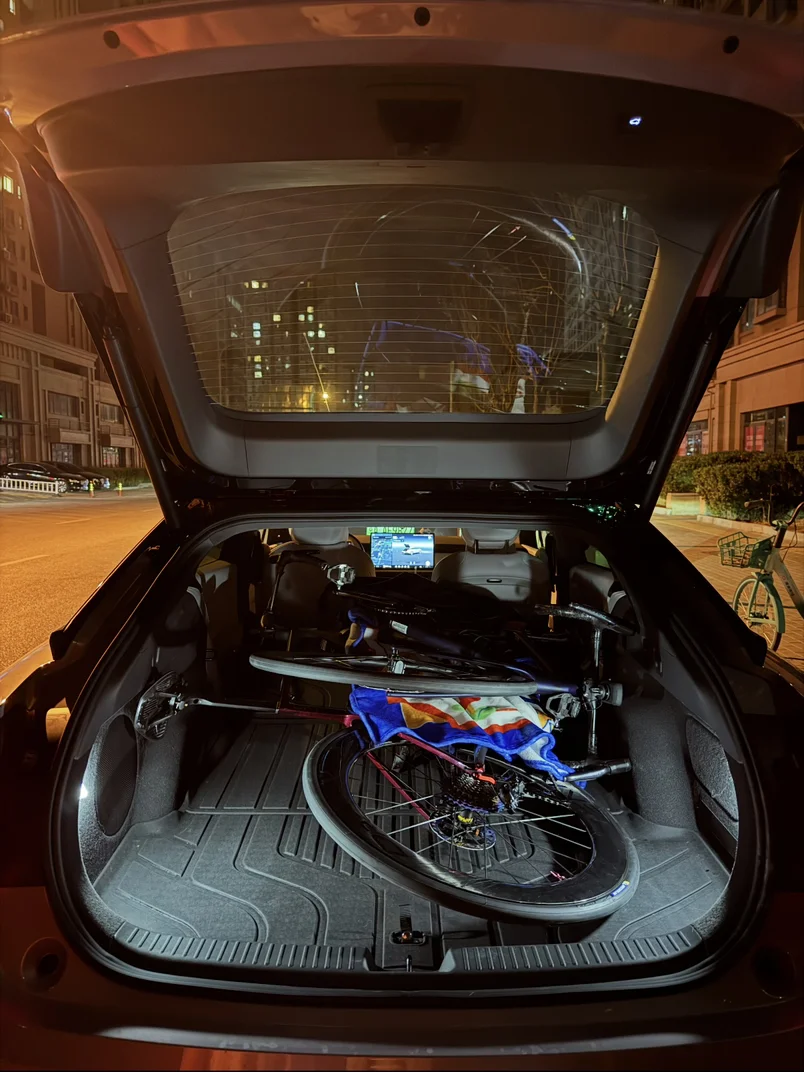 后备箱空间超大,公路车、山地车轻松装下,不用折叠也能放