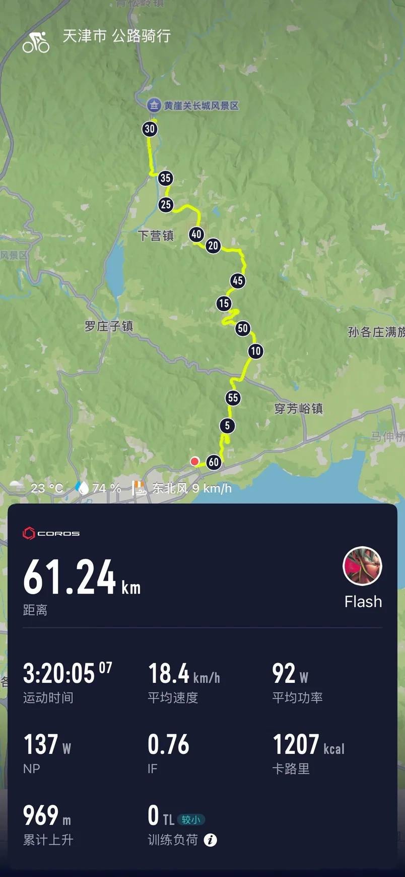 我骑了全程约61公里,总爬升969米