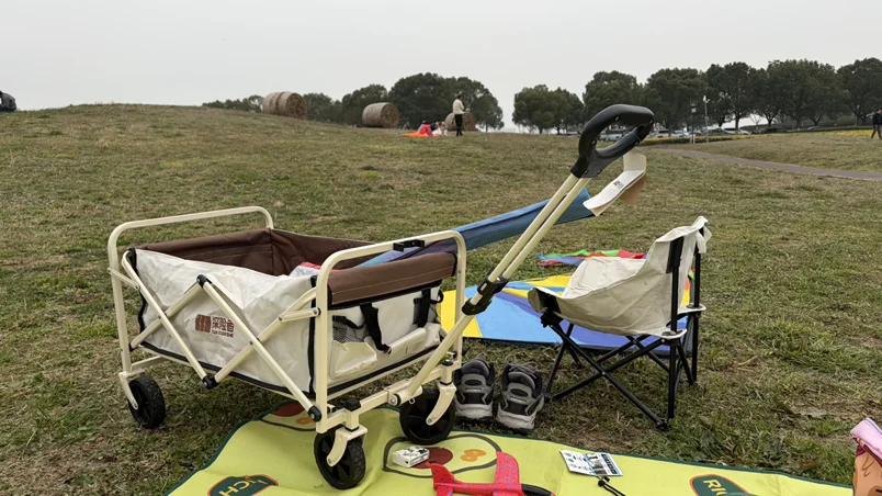这次我带的装备也比较轻便,天气多云☁️阳光不是很大就没有带帐篷⛺,只带了野餐垫+露营椅+小零食。扎好营地后,孩子在草地疯跑,我就在一旁晒太阳、看湖景,偶尔陪他玩飞机✈️或者一起放风筝🪁。这种状态真的太舒服了,没有电子屏、没有商场噪音,只有风声和孩子的笑声。