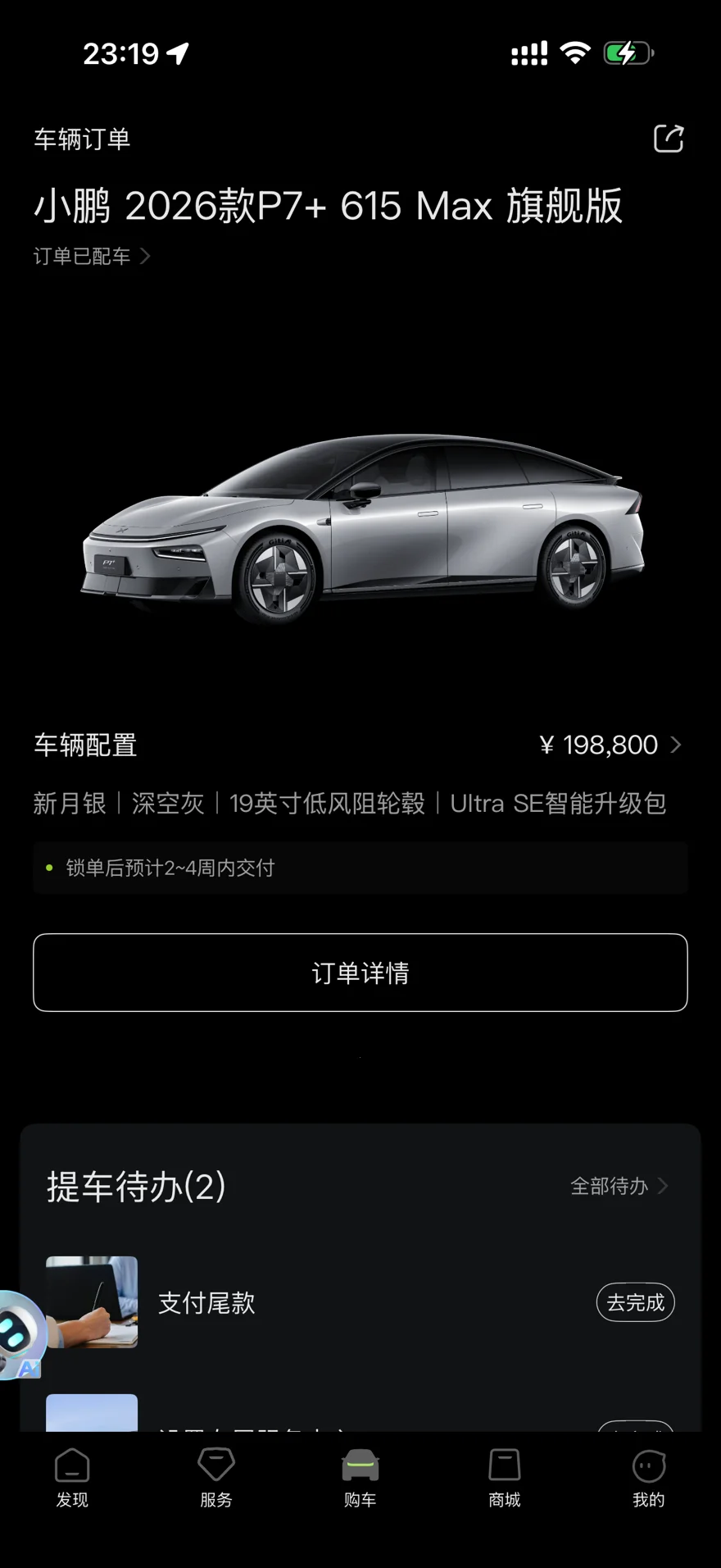 谁成想呢?3月29号,我下定的不是MONA 03,而是小鹏P7+。4月2号,车就交付了。从下定到提车,四天。你说这叫什么?这叫缘分。