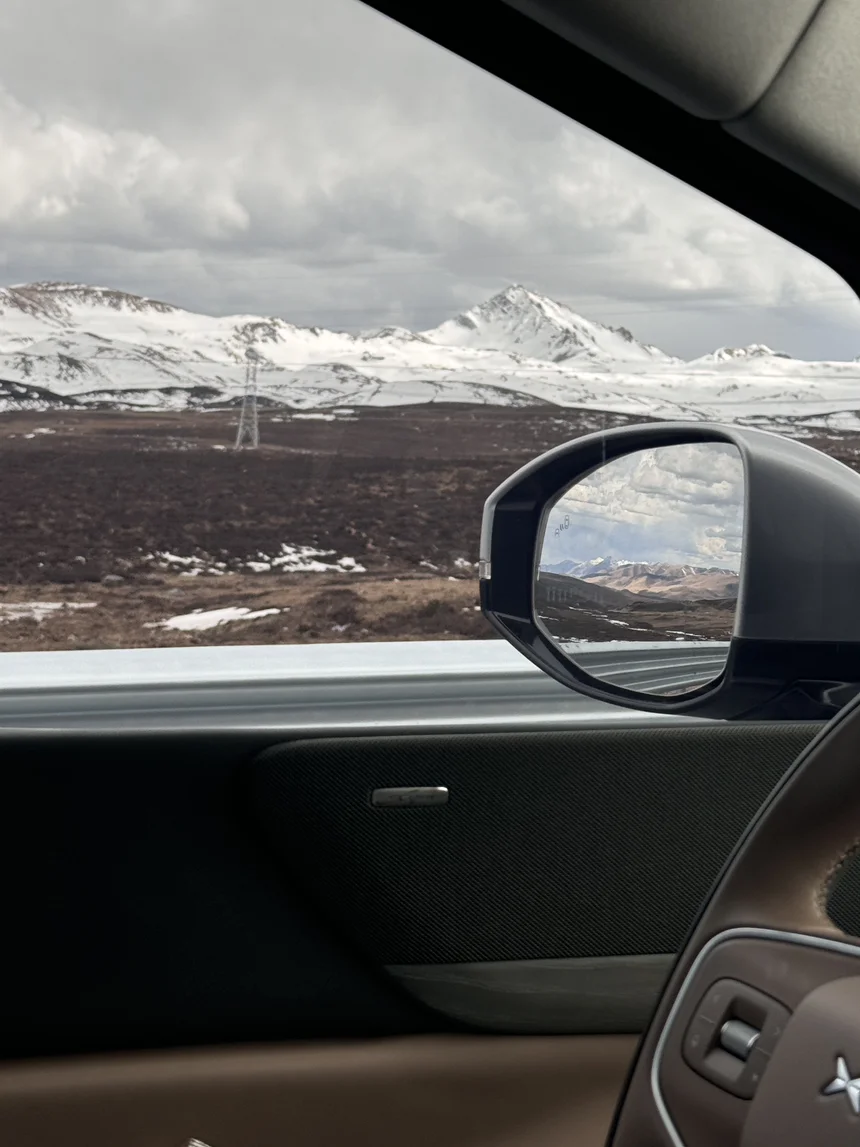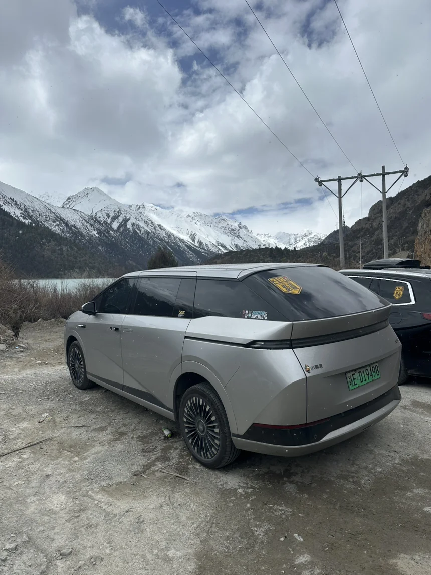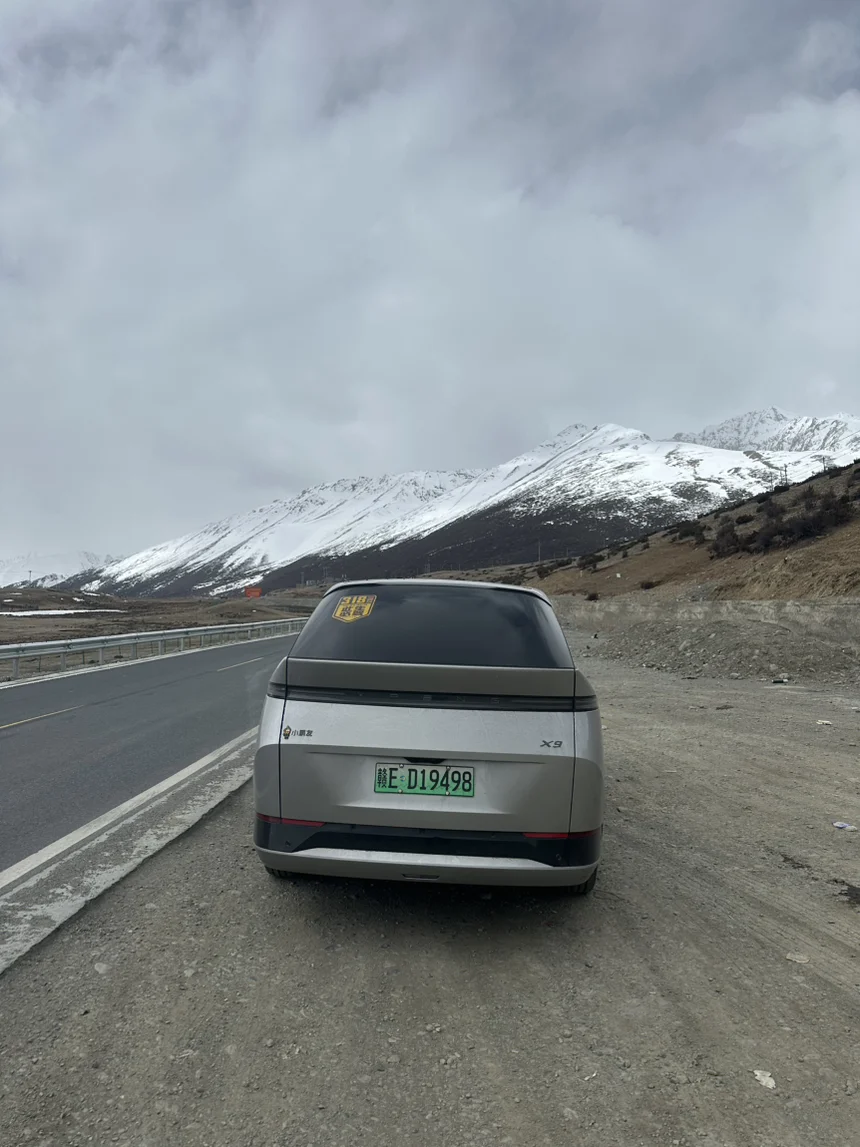 透过车窗看雪山在眼前铺展,后视镜里是蜿蜒的公路,开着小鹏X9穿梭在雪域高原,安全感和自由感直接拉满!
