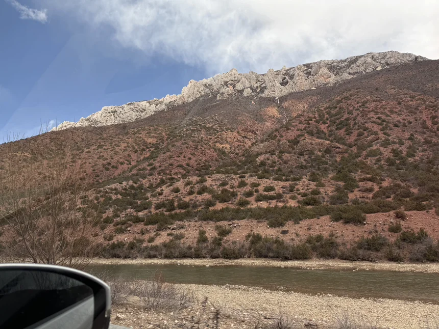 赤红的山峦像被大自然泼了颜料,山脚下是奔腾的江河,蓝天和白云随手一拍都是壁纸级画面✨