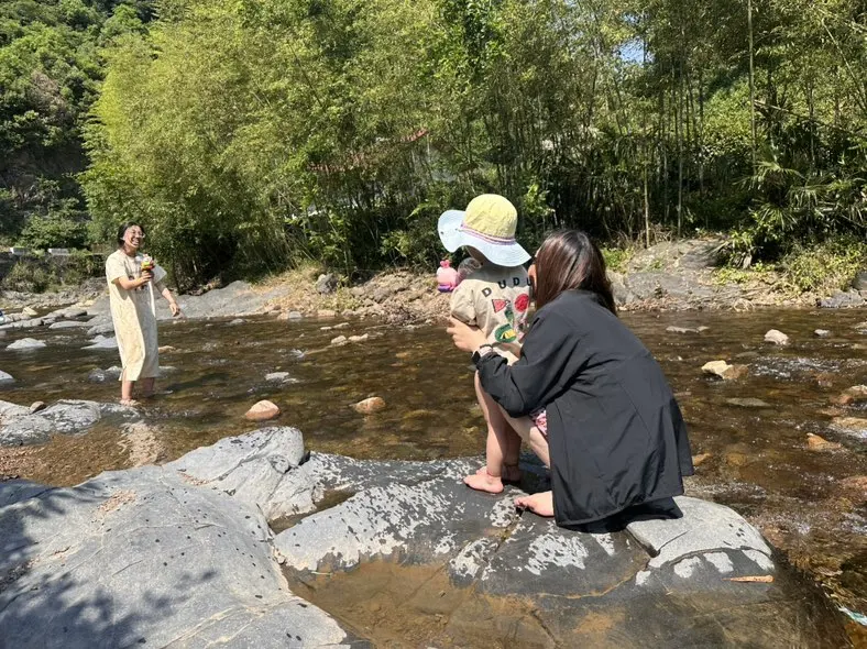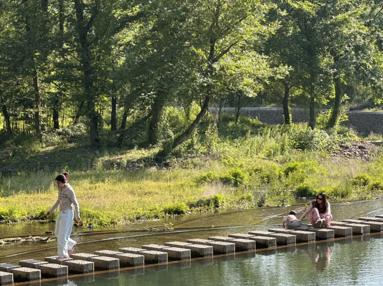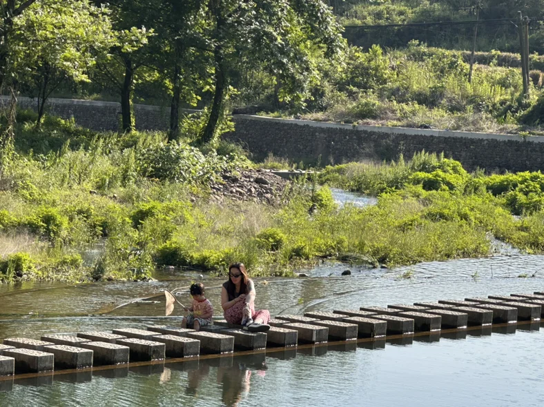 告别桃岭六道湾,继续前行前往水墨汀溪与月亮湾。水墨汀溪青山绿水相依,溪流清澈见底,漫步溪边,踩水嬉戏,感受山间溪水的清凉,看两岸竹林摇曳,宛如走进一幅流动的水墨丹青。月亮湾则多了几分灵动,浅滩处溪水潺潺,不少人在此戏水拍照,山野间的自在与洒脱,让人心生欢喜。沿途还能偶遇古朴的皖南村落,白墙黛瓦错落有致,充满烟火气,尽显皖南乡村的温婉与宁静。