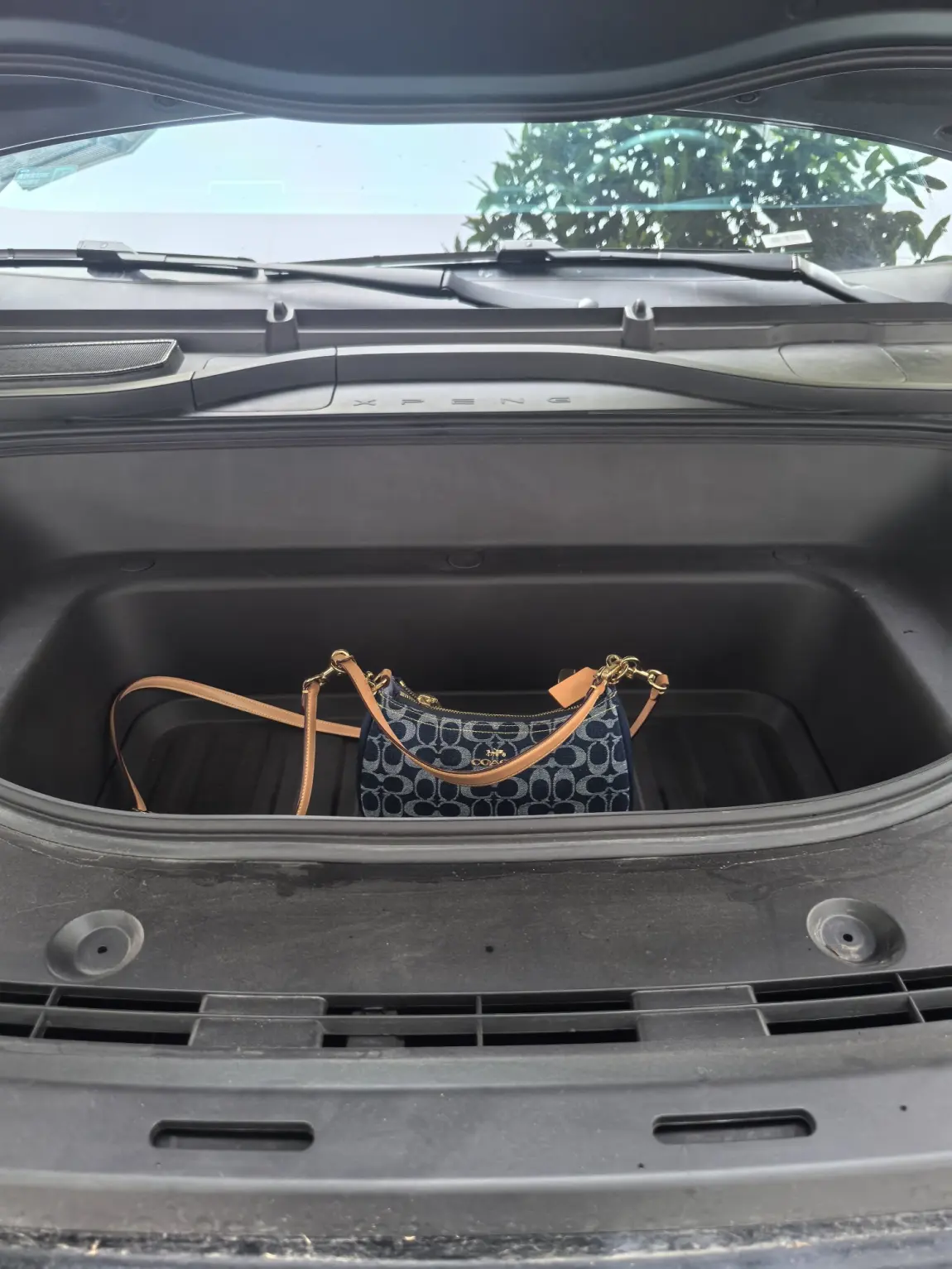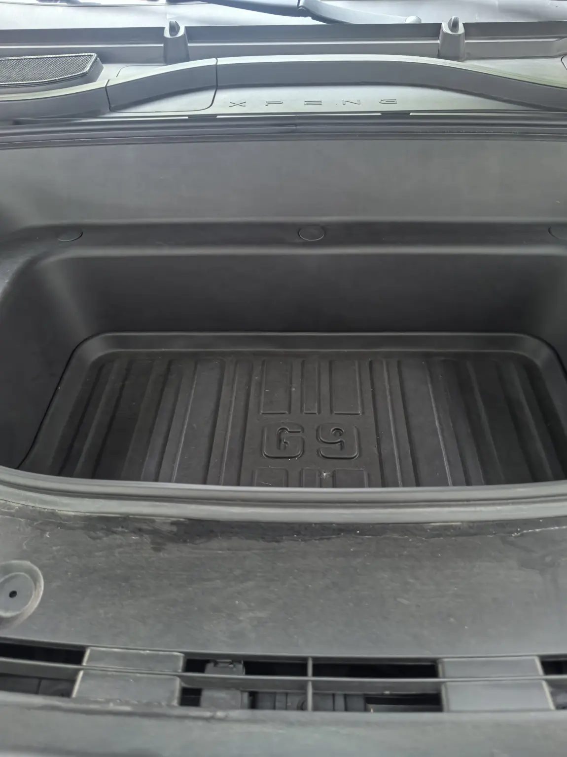 除了车内精细化储物,G9的前后备箱组合,更是让出行装载力拉满。车头位置配备71L前备箱,虽然容积不算极致,但胜在深度可观,适合放置充电枪、补胎工具、应急包、私密物品等,不占用后备箱空间,还能实现物品分类存放,拿取也很方便。