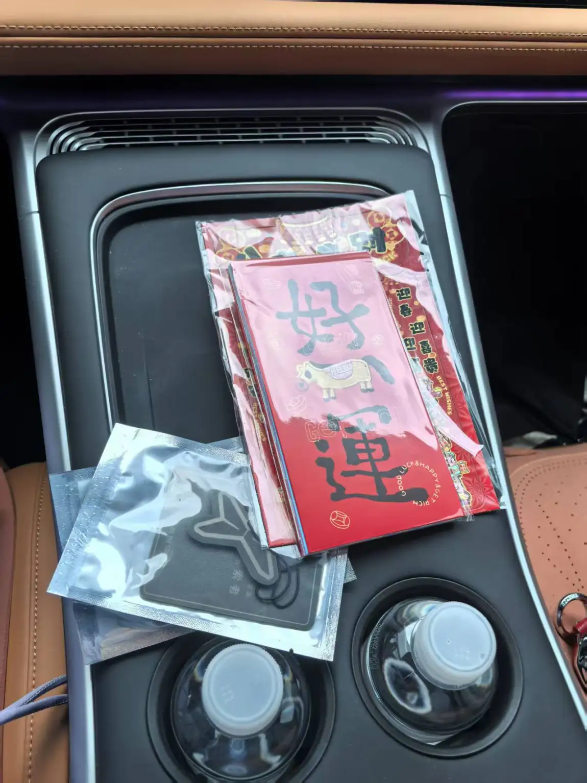 前排储物区域堪称“宝藏空间”,中控台下方做了大面积镂空掏空设计,形成了一个超大开放式储物槽,平时放女士挎包、男士手包、手提袋完全没问题,深度和宽度都足够,再也不用把包放在副驾驶占位置。中控台前端配备双50W无线充电板,手机随手一放就能充电,旁边还有专属卡槽、杯架,墨镜、停车卡、口红等随身小物件都能分类摆放,不会杂乱无章。