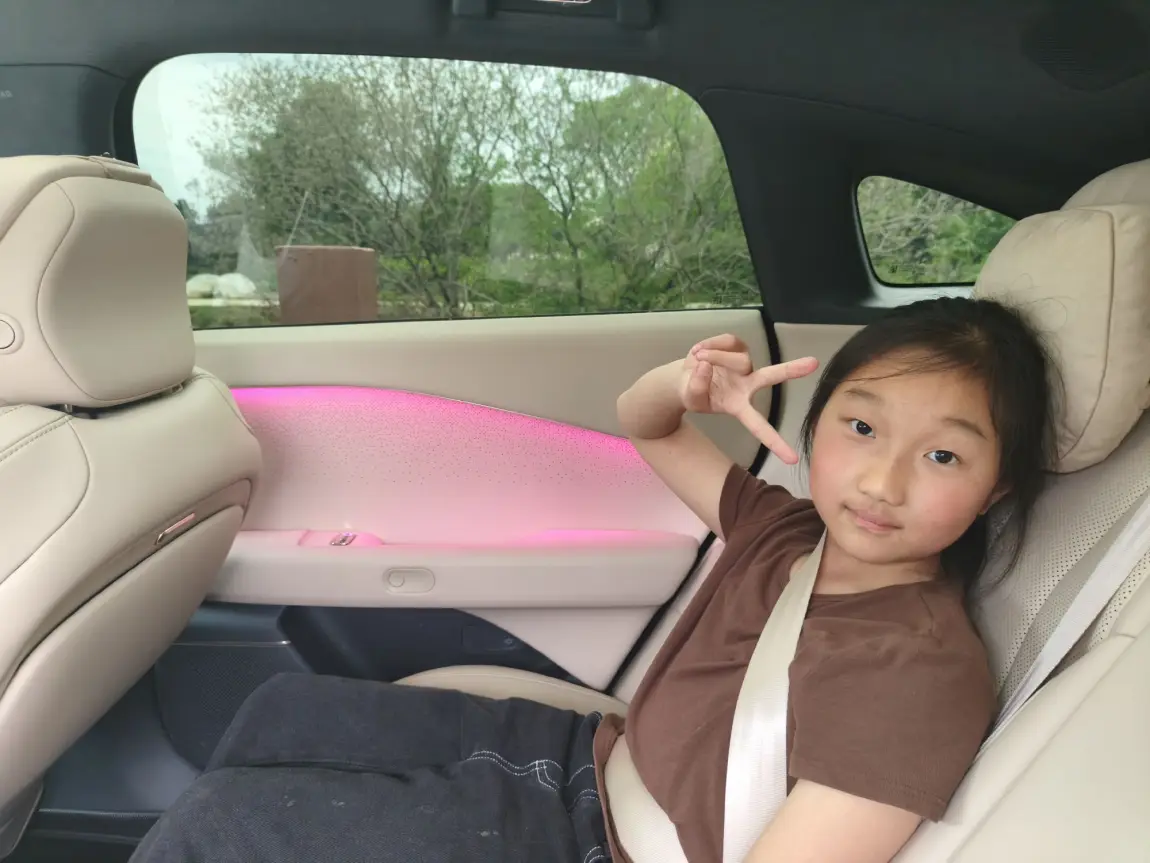 女儿抱着柯基在后排一路撒欢,到了公园直接放飞自我🥳: